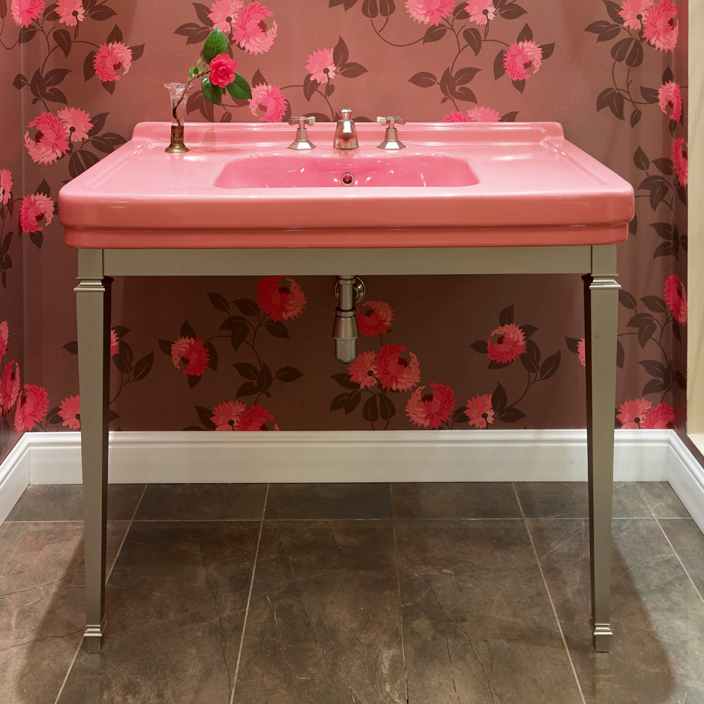 - pink ceramic top and matt nickel metal base;