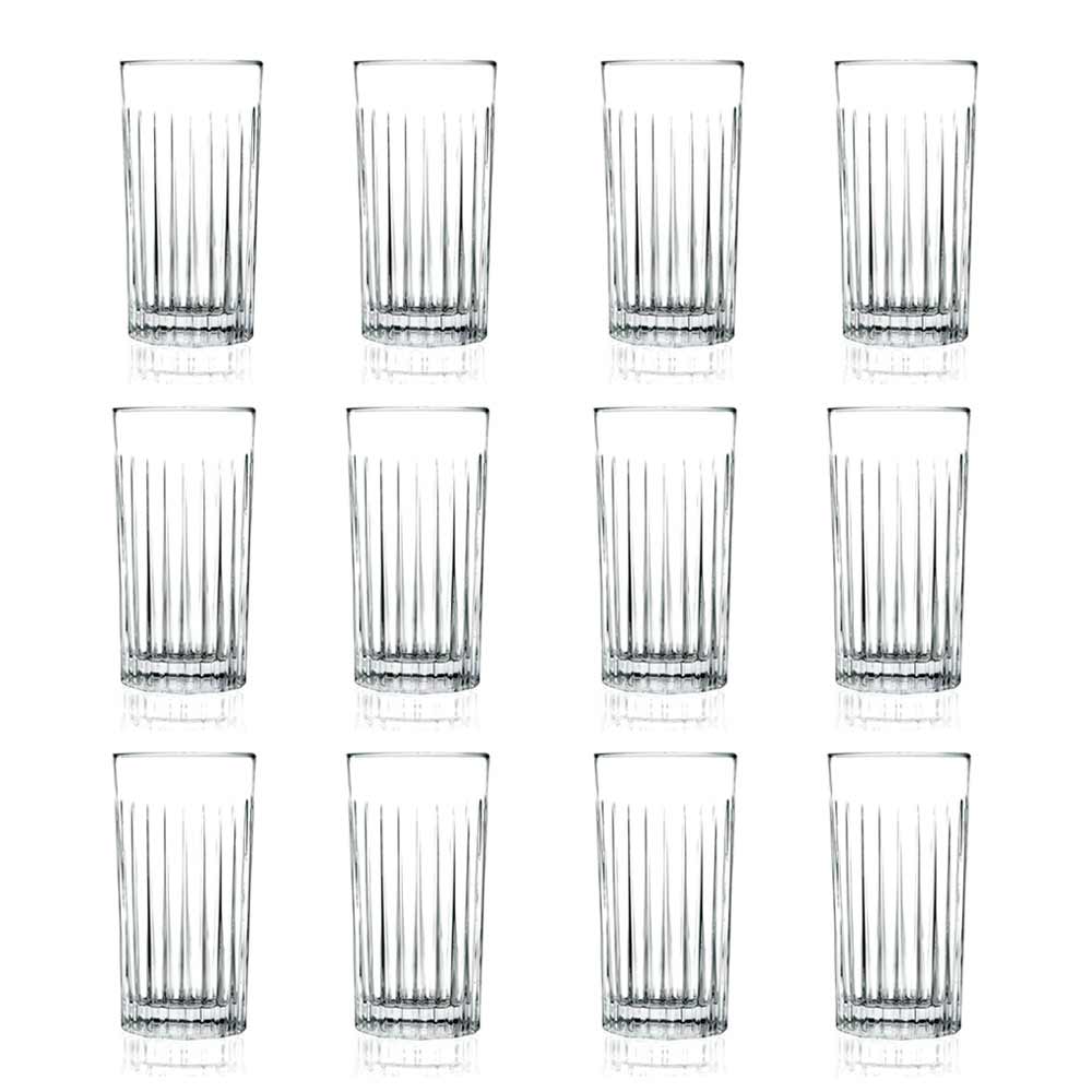12 luxury highball tumbler cocktail glasses in decorated eco crystal 100% made in Italy.