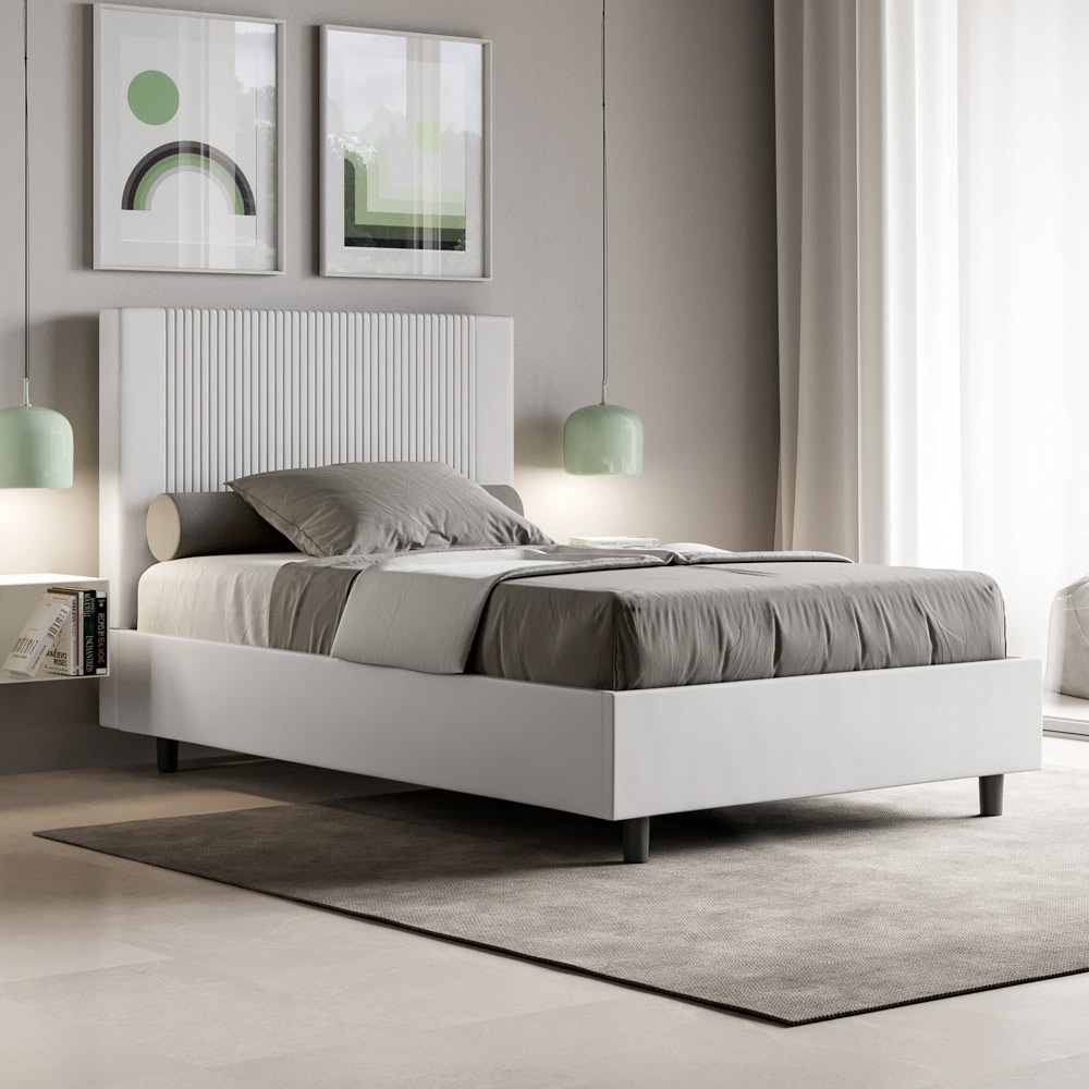 Queen-size bed, 120x200 cm, padded and upholstered in imitation leather, Made in Italy