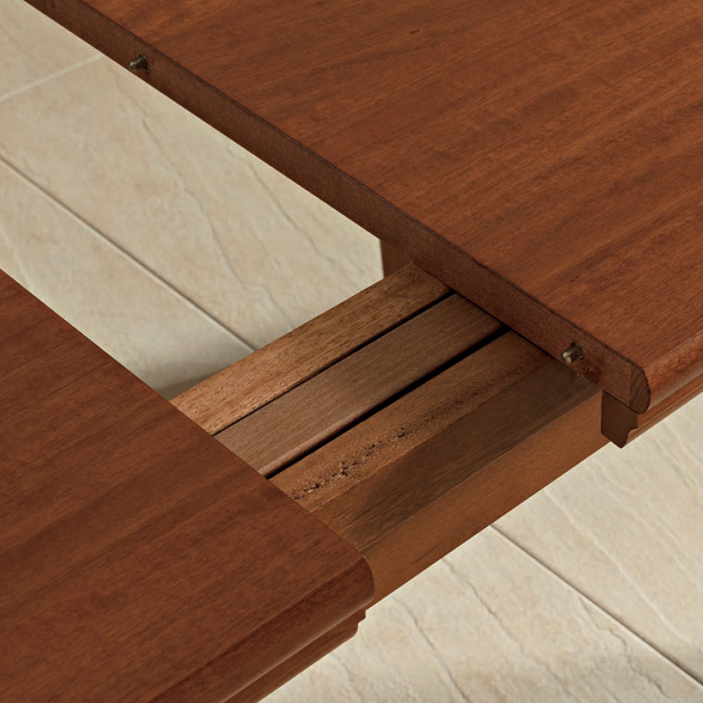 Thanks to the possibility of extracting 4 shelves of 55 cm each contained within the frame with central opening and wooden guides , the table can accommodate from 6 to 14 people.