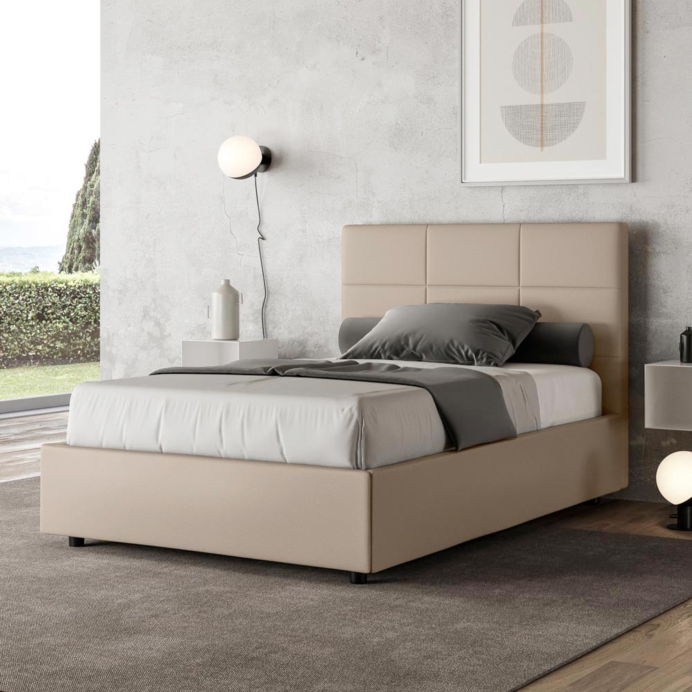 French bed 140x200 cm padded and upholstered in faux leather, Made in Italy