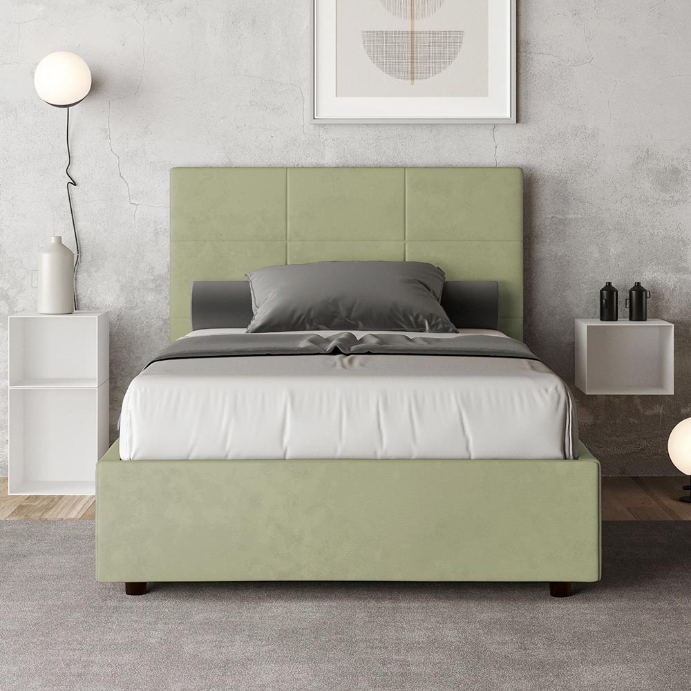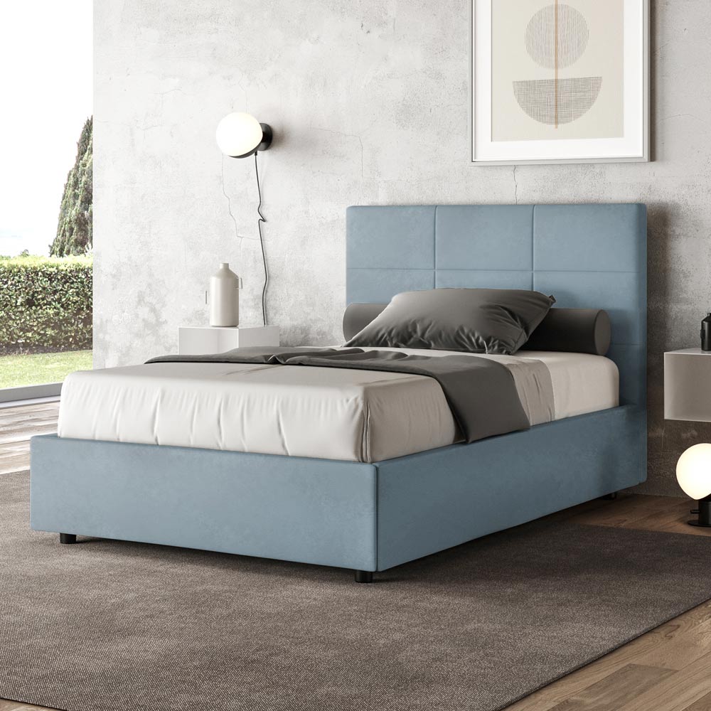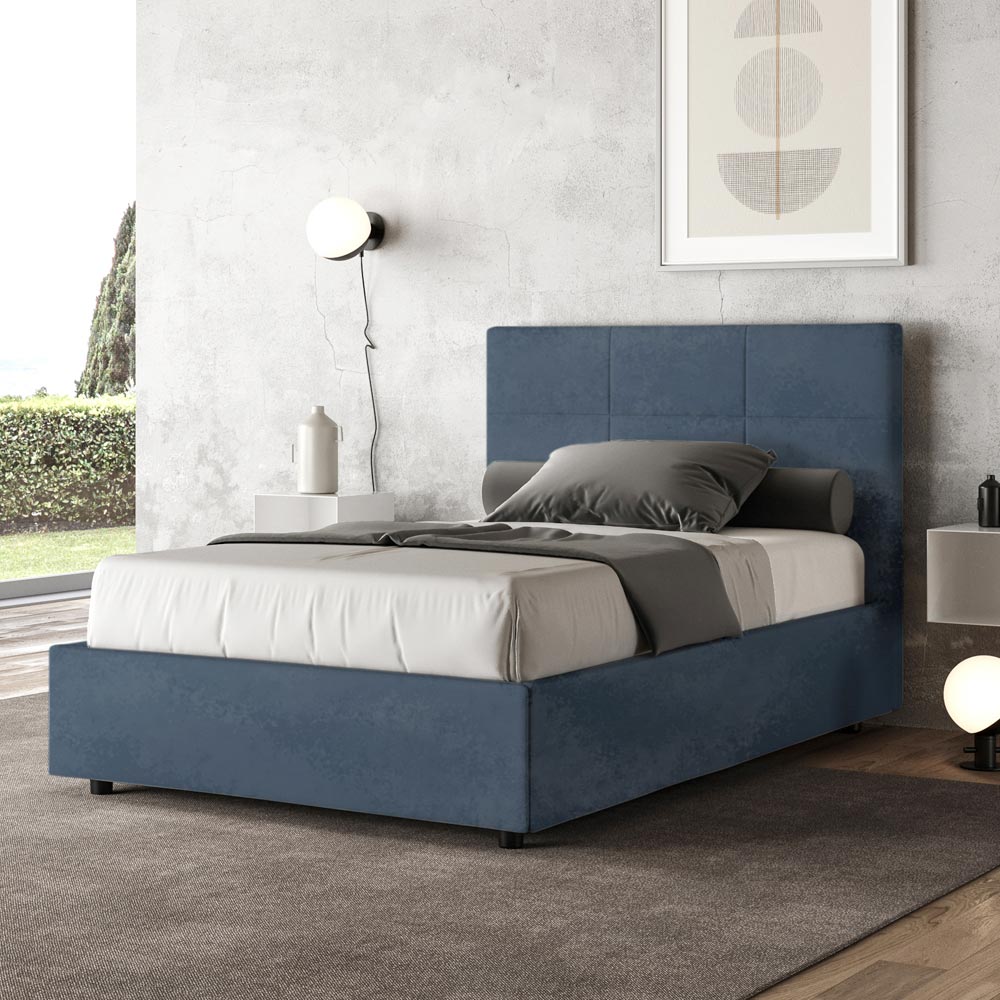 French bed 140x200 cm padded and covered in microfiber, Made in Italy