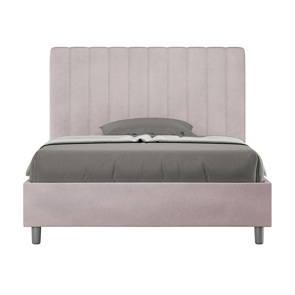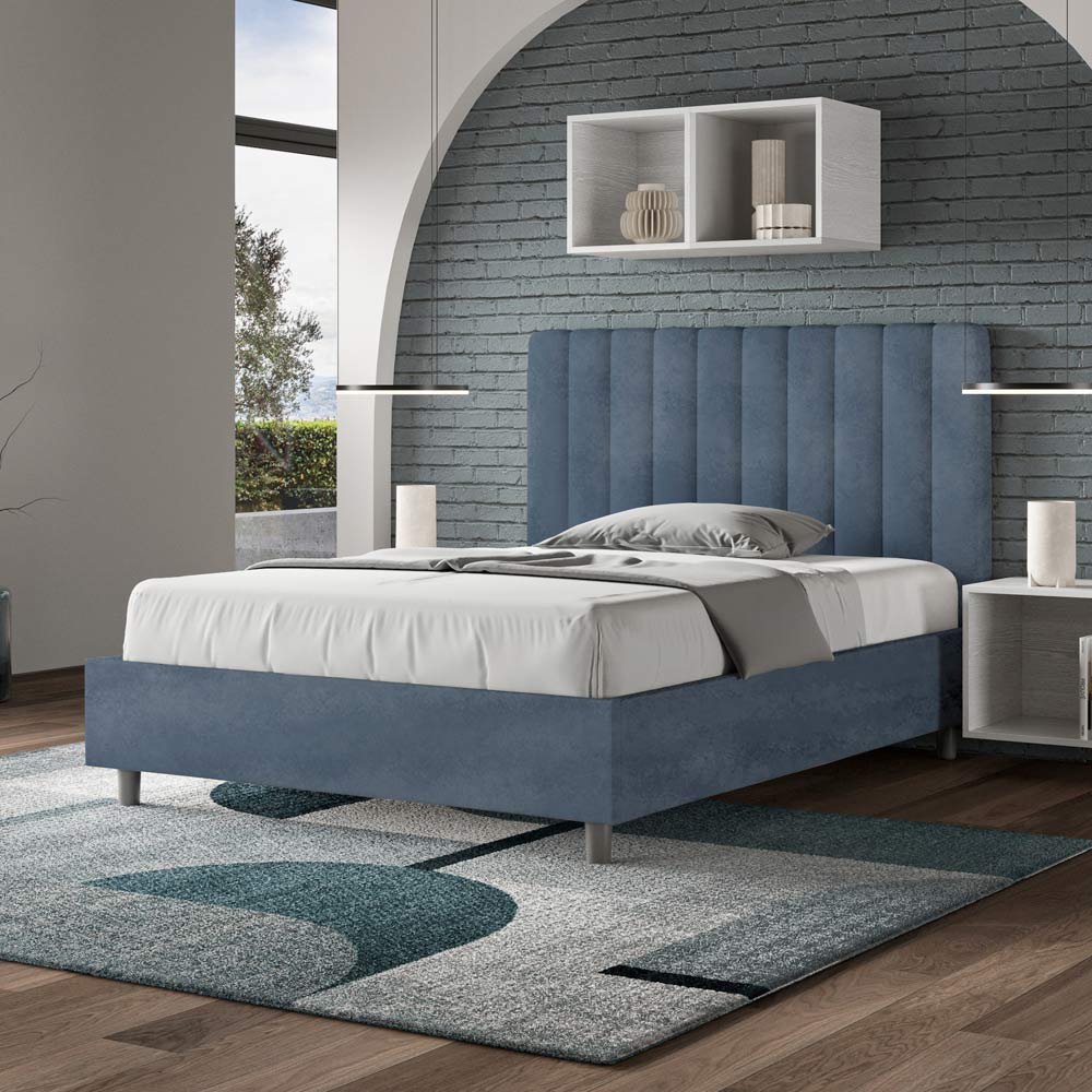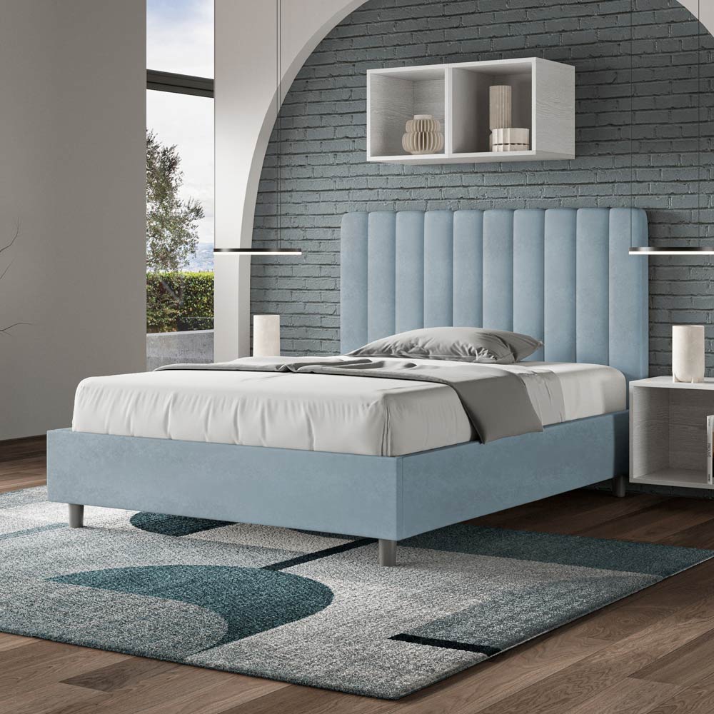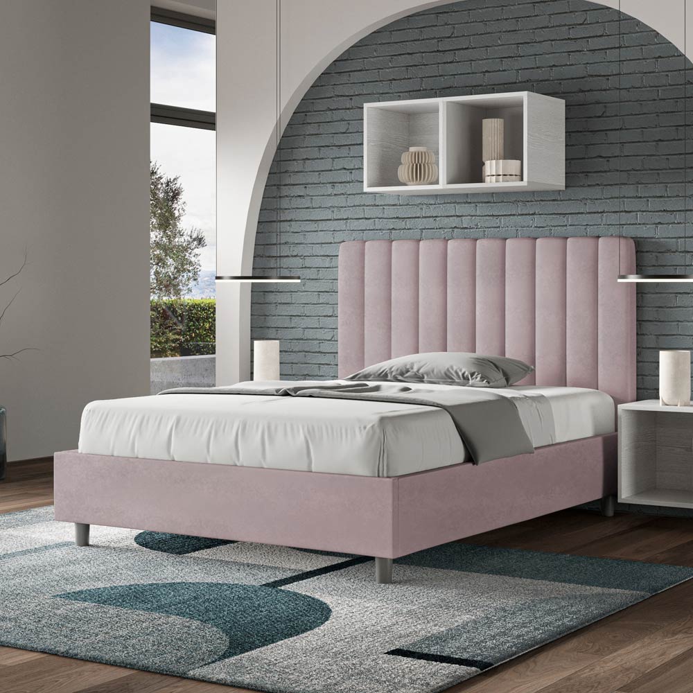 French bed 140x200 cm padded made of melamine panels and covered in microfibre , entirely Made in Italy. This French bed with an upholstered bed frame is ideal for those seeking a statement piece without being overly overbearing. This bed boasts a minimalist headboard with a delicate quilted effect of symmetrical vertical lines , which fits beautifully into any setting, whether modern or classic.