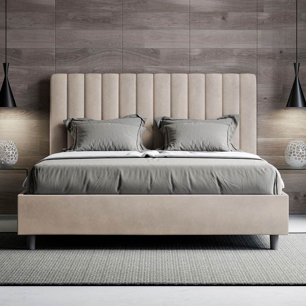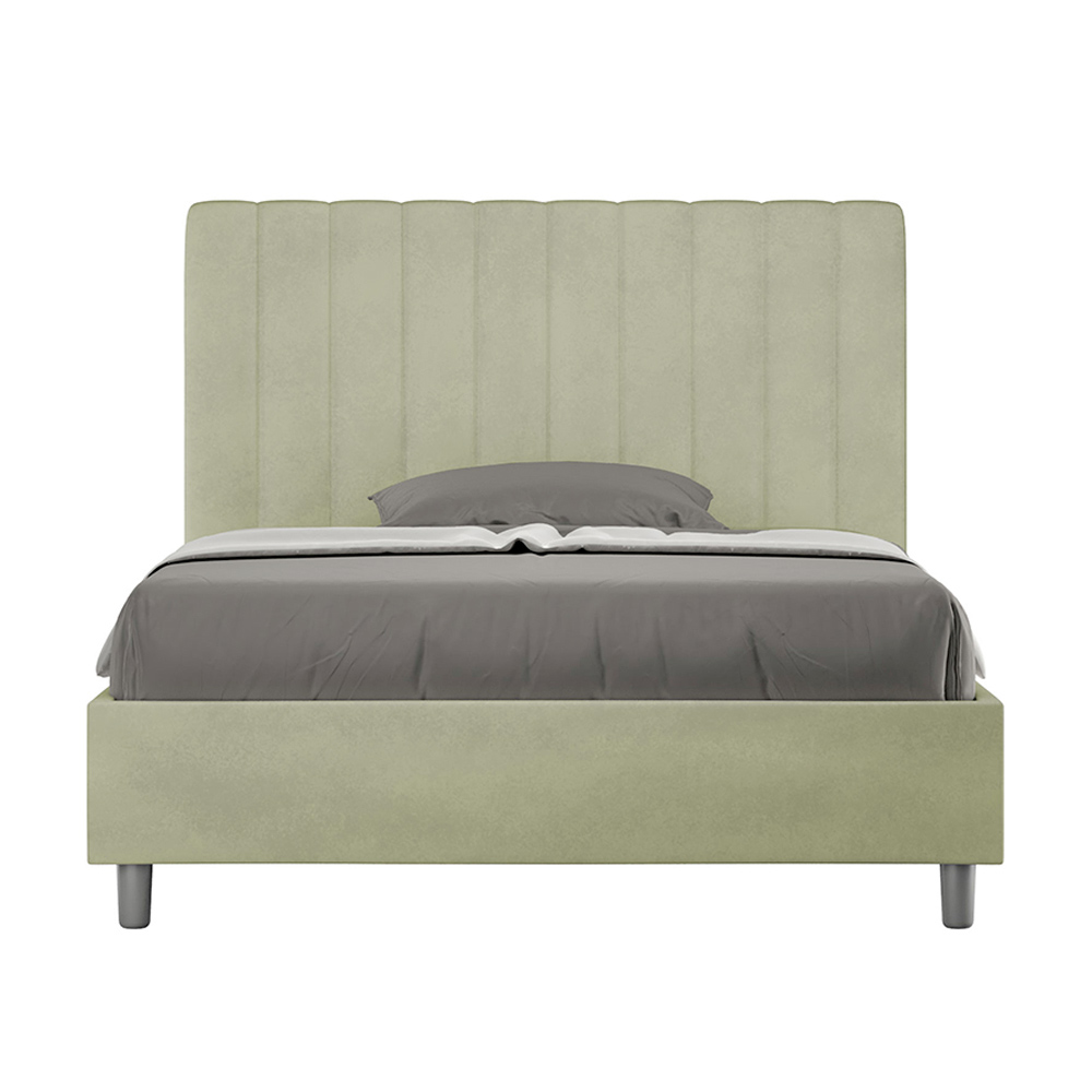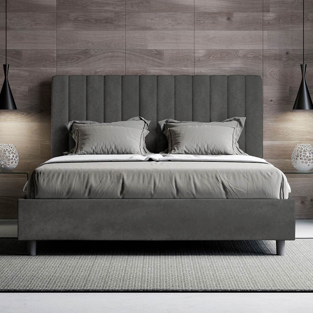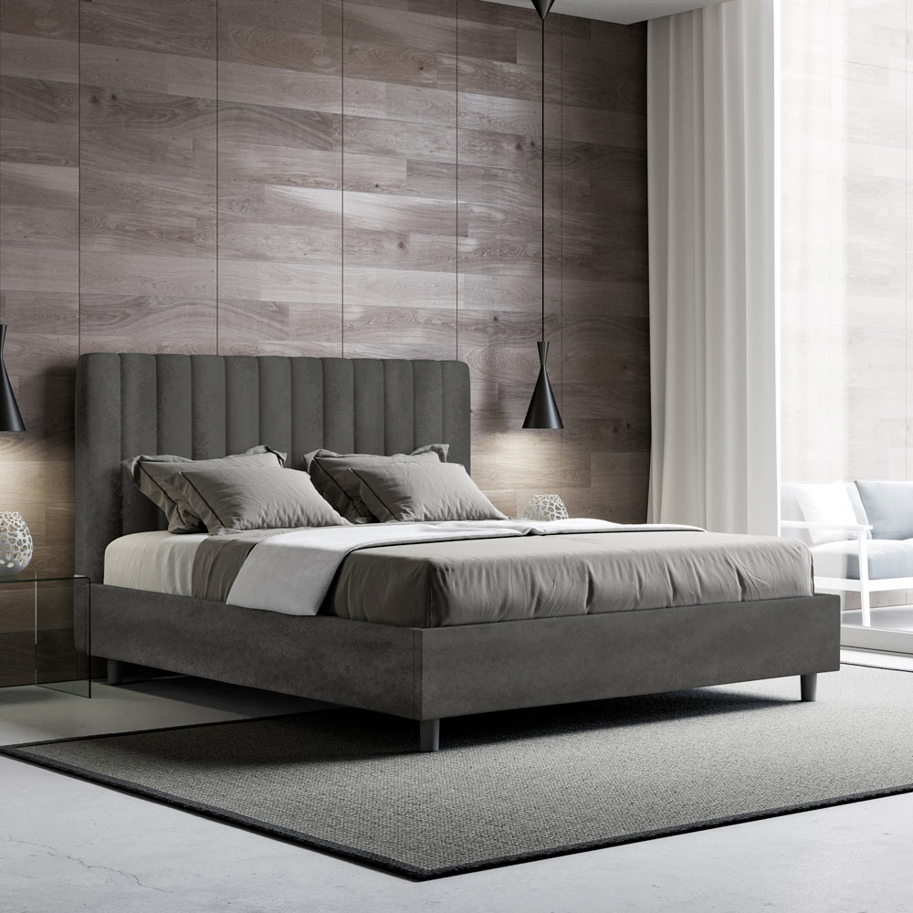 French bed 140x200 cm padded made of melamine panels and covered in microfibre , entirely Made in Italy. This French bed with an upholstered bed frame is ideal for those seeking a statement piece without being overly overbearing. This bed boasts a minimalist headboard with a delicate quilted effect of symmetrical vertical lines , which fits beautifully into any setting, whether modern or classic.