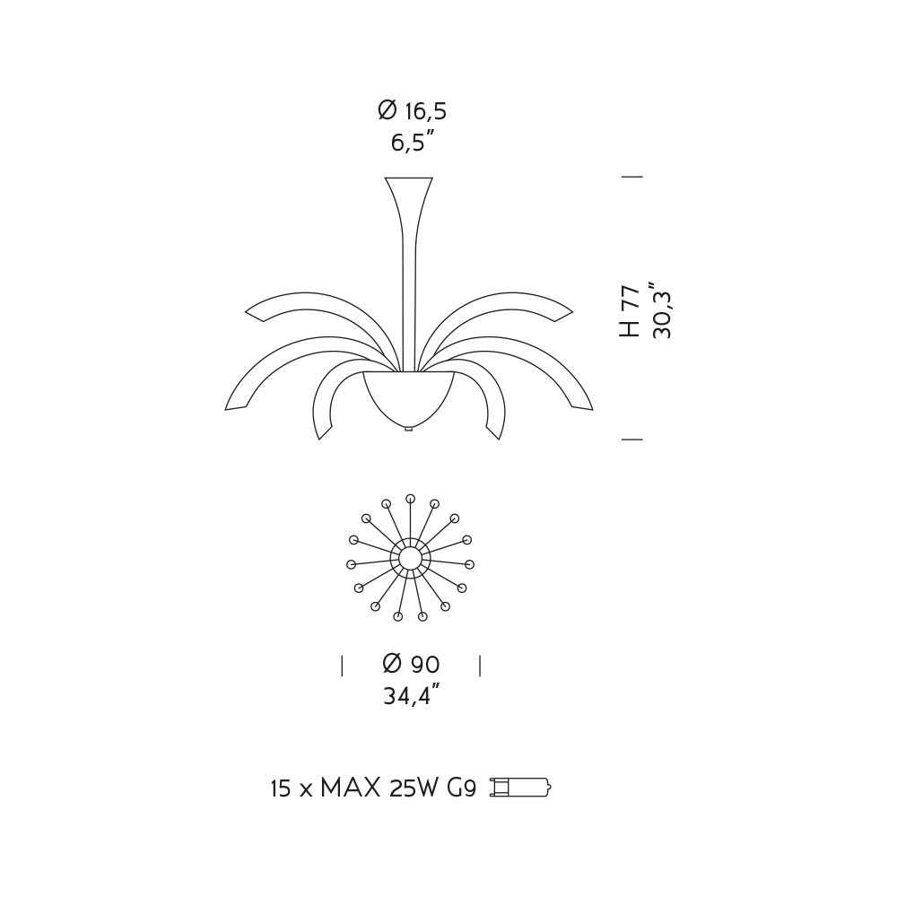 Bulbs (not included) : 15 x MAX 25W G9