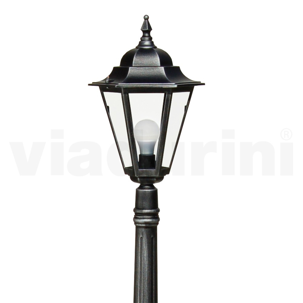 This elegant die-cast aluminum outdoor lamp combines sophistication and durability in a design that captures the essence of classic taste. The versatile and timeless finish makes this lamppost an ideal complement for any type of environment, from the most traditional to the modern one. The slender lines of the structure rise gracefully, culminating in a lantern that diffuses a warm and welcoming light, ideal for creating an evocative atmosphere in any outdoor space. With its elegant appearance and durable construction, this lamppost is the perfect choice for those who want to elegantly beautify and illuminate gardens, parks or driveways.