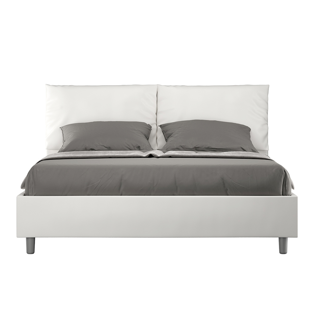 160x200 cm padded double bed made of chipboard panels and covered in imitation leather , entirely Made in Italy. This double bed with an upholstered bed frame perfectly embodies the advantages of an upholstered bed: comfort, contemporary style, functionality, and efficient use of space . This bed, with its wide- cushioned headboard , offers a relaxing corner ideal for reading or watching TV, enhancing your bedroom. Elegant and stylish, this bed is upholstered in faux leather, making cleaning quick and easy: simply wipe it with a microfiber cloth to keep it sparkling.