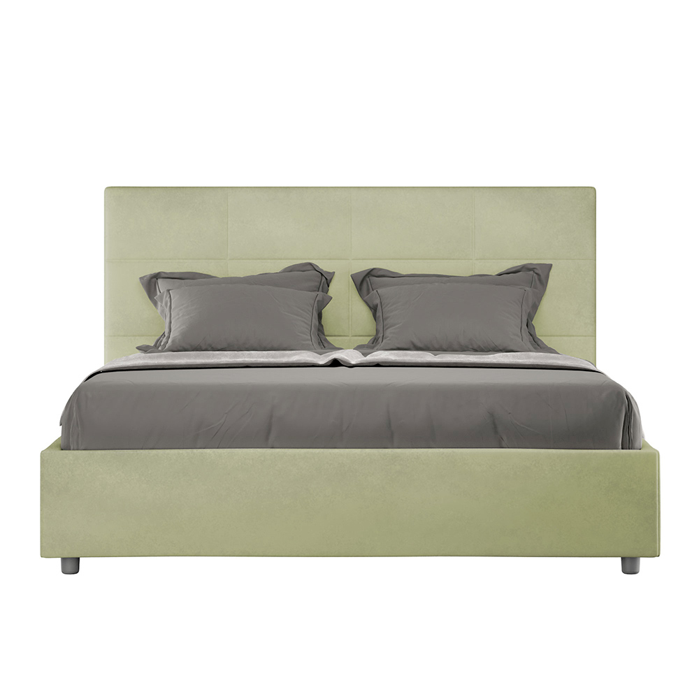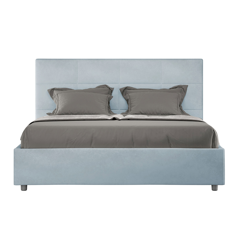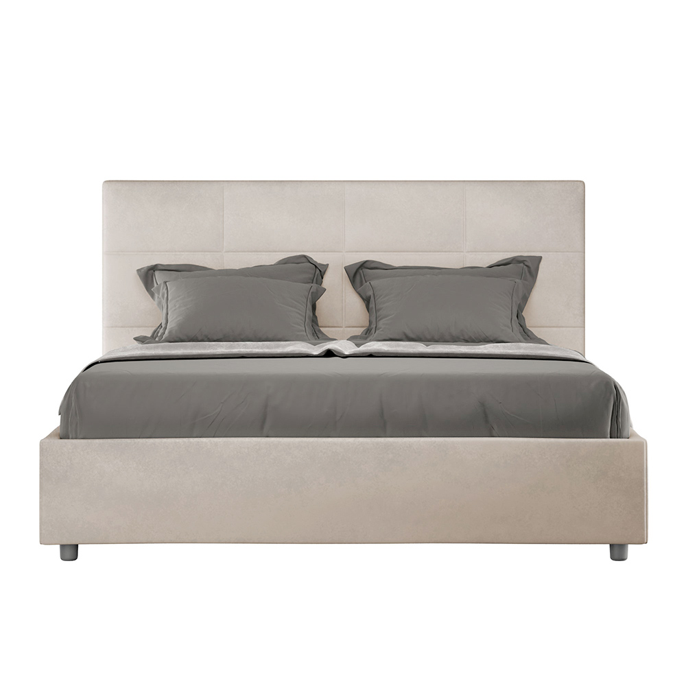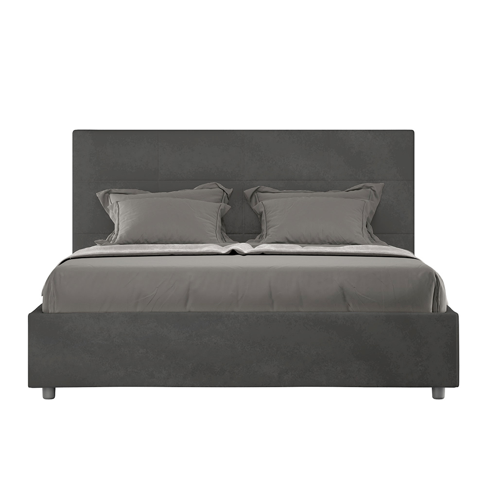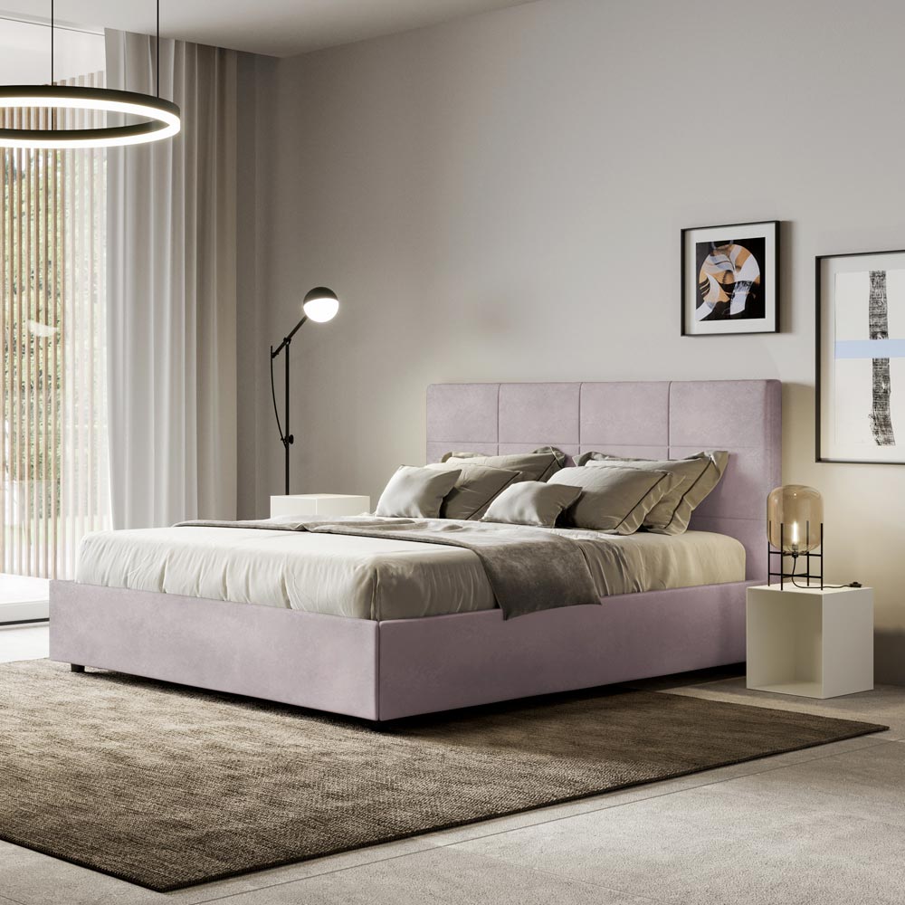 160x200 cm padded double bed made of chipboard panels and covered in microfibre , entirely Made in Italy. This bed, with its padded frame, is the perfect example of how elegance and comfort can be combined in a single piece of furniture. This model is characterized by its headboard enriched withRectangular geometric patterns . Covered in microfiber, it is easy to keep clean: just use a microfiber cloth for quick and effective cleaning.