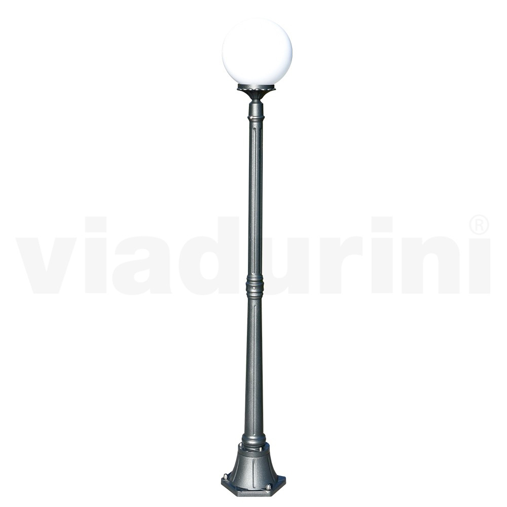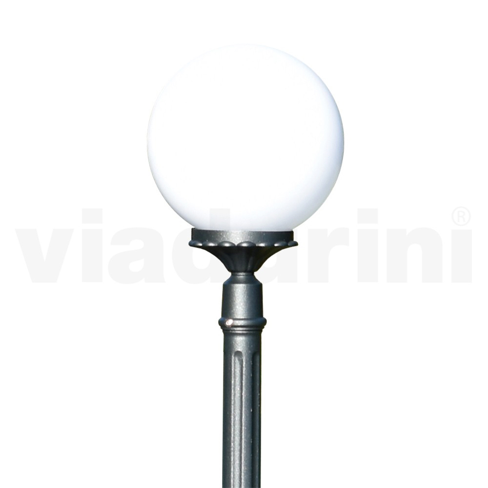 Garden lamp made with an anthracite finish die-cast aluminum structure and opal acrylic sphere diffuser, entirely Made in Italy.