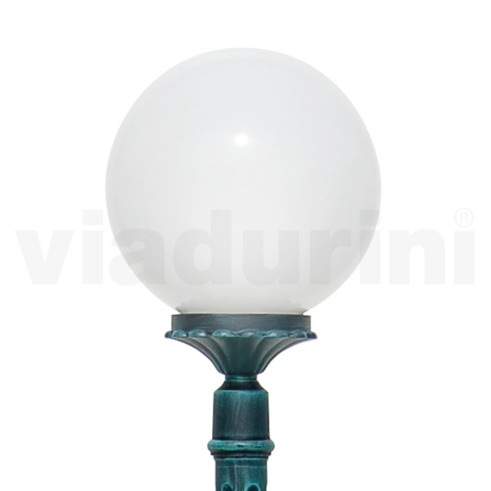 Garden lamp made with a die-cast aluminum structure and opal acrylic sphere diffuser, entirely Made in Italy.