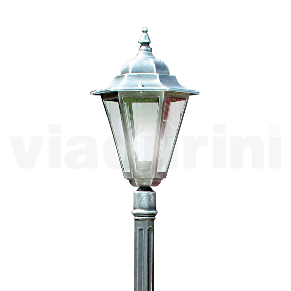 This elegant die-cast aluminum outdoor lamp combines sophistication and durability in a design that captures the essence of classic taste. The versatile and timeless finish makes this lamppost an ideal complement for any type of environment, from the most traditional to the modern one. The slender lines of the structure rise gracefully, culminating in a lantern that diffuses a warm and welcoming light, ideal for creating an evocative atmosphere in any outdoor space. With its elegant appearance and durable construction, this lamppost is the perfect choice for those who want to elegantly beautify and illuminate gardens, parks or driveways.