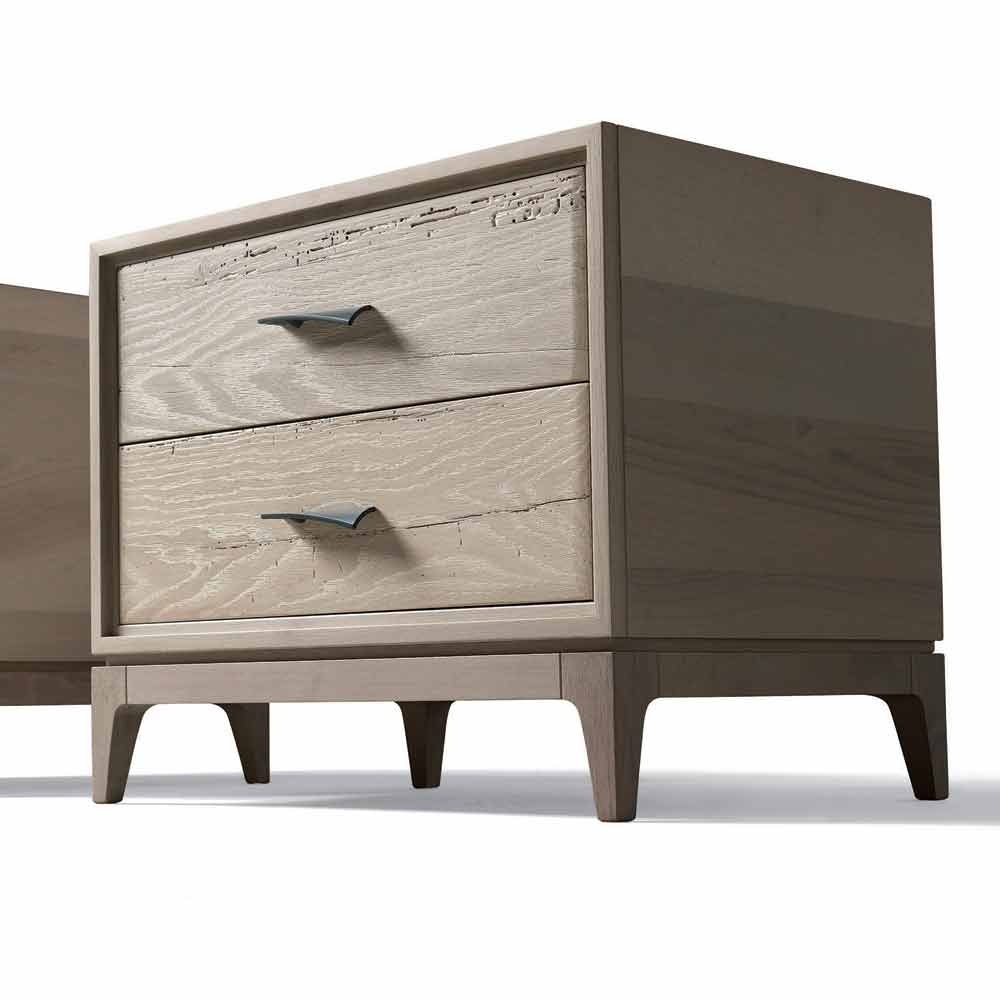 Modern bedside table 2 drawers in antique oak, l.60xp.42 cm, Margo