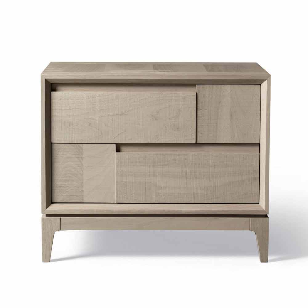 Innovative and original design, thanks to the refined workmanship of the drawers. The queues that characterise the surface, with alternating rectangular elements give movement to the surfaces.