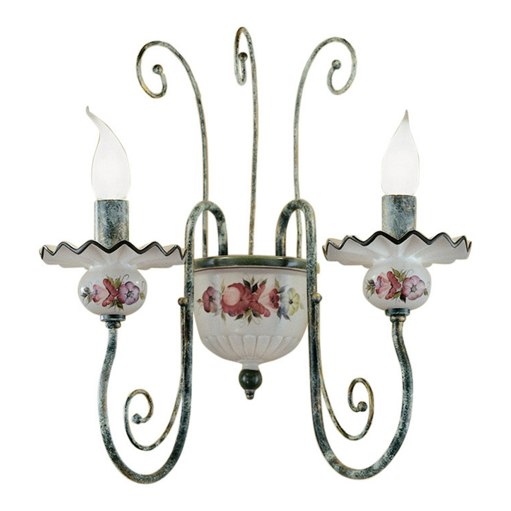 This 2-light wall lamp is entirely handcrafted in antique brass and ceramic with hand-painted floral decoration, Ā to highlight the craftsmanship and manual skills of the artisans.
