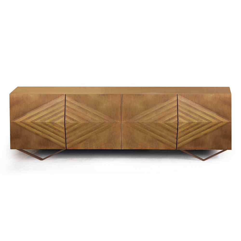 Sideboard made in Italy with lacquered wood structure, 2 or 4 doors in natural or lacquered faceted wood, internal shelves (and open compartment) in transparent glass and base in painted steel . An exclusive design that embodies functionality and elegance to give life to a versatile piece of furniture , ideal for any home environment in which it creates a wonderful harmony with the surrounding elements thanks to its strong modern personality and its marked refined style . The materials used for its construction increase its value even more and underline its quality by offering a solid and robust furniture for the living area characterized by the unique features of wood and its splendid veins.