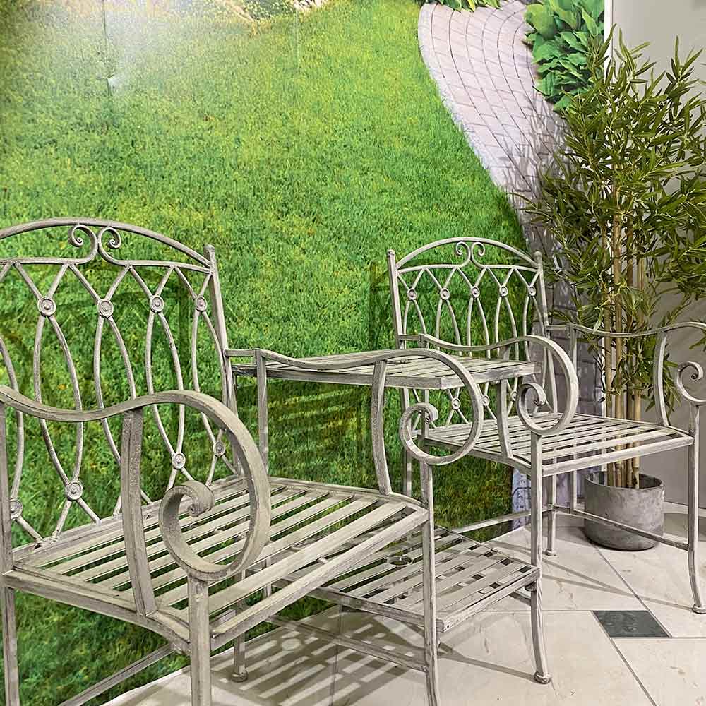 2 Seater Bench with Metal Table and Umbrella Stand - Glue