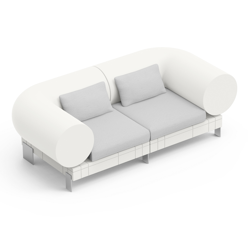 This contemporary sofa combines comfort and modern design in an attention-grabbing piece of furniture. Characterized by clean queues and an innovative shape with lateral cylinders, the sofa offers a touch of unique and functional style . Its colour palette introduces an element of brightness and freshness into every living space.