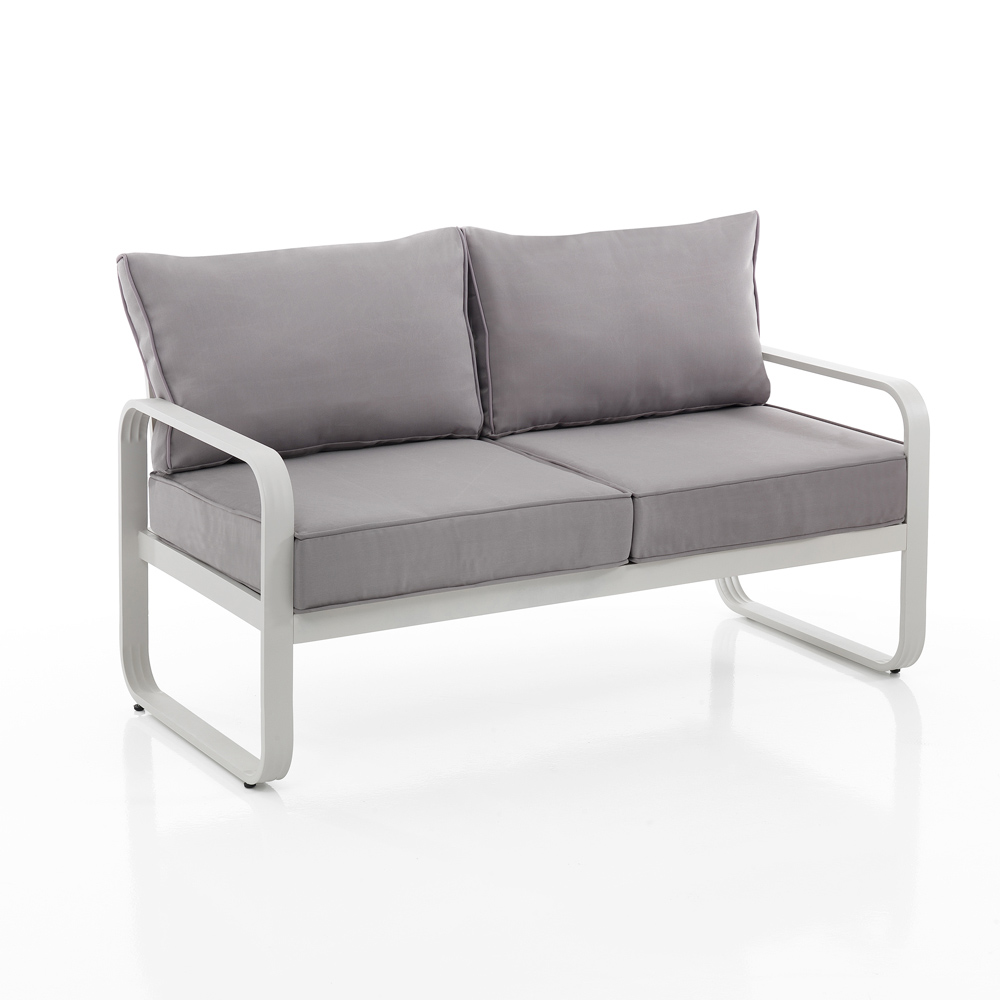 This two-seater sofa is the emblem of minimalist comfort for outdoor spaces . Its clean queues and aluminium structure offer a modern and captivating aesthetic that adapts with versatility to both modern gardens and more classic style terraces.