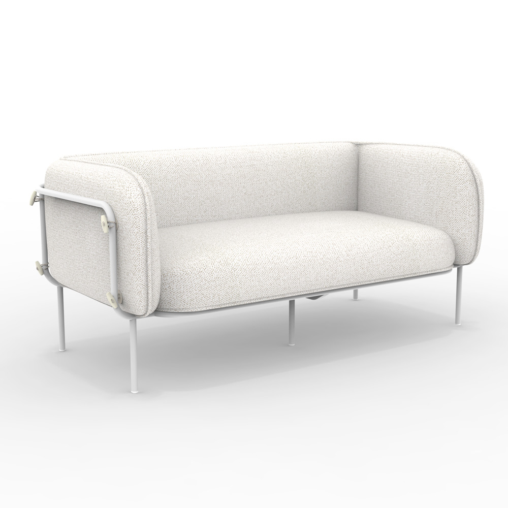 waterproof and UV-resistant fabric envelops soft padding that invites moments of authentic relaxation. The available fabric finishes blend harmoniously with the surrounding environment, reflecting the sunlight and helping to create an atmosphere of serenity and style. Placed next to a sparkling pool or in a green corner of the garden, this sofa is a promise of long-lasting comfort and beauty that defies time.