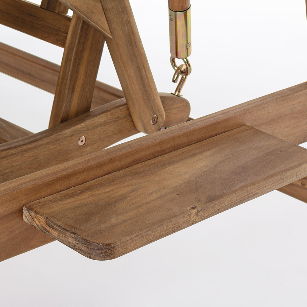 2 seater rocking garden sofa in acacia wood with white canvas.