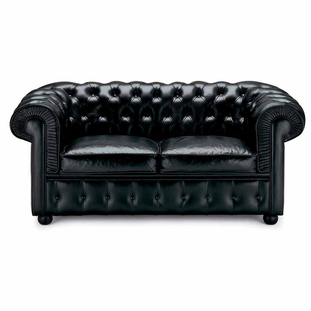Classic 2 seater sofa in leather with wooden feet Made in Italy.