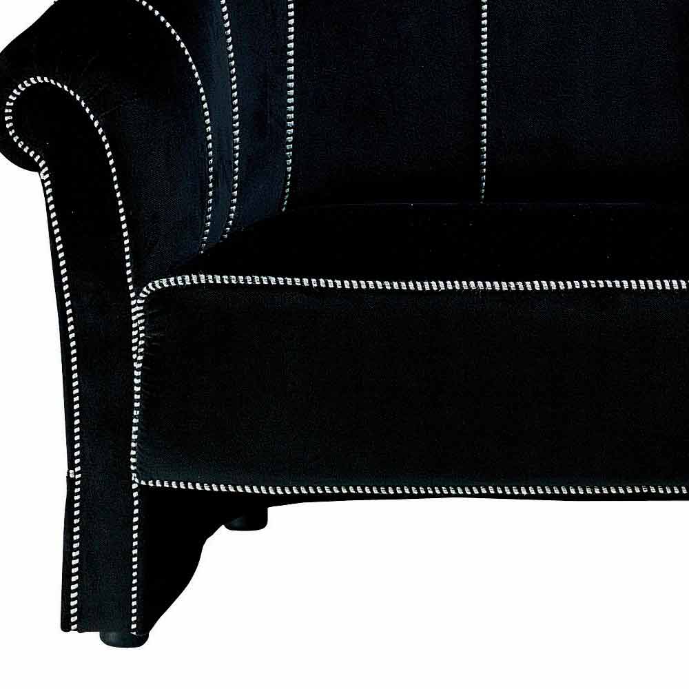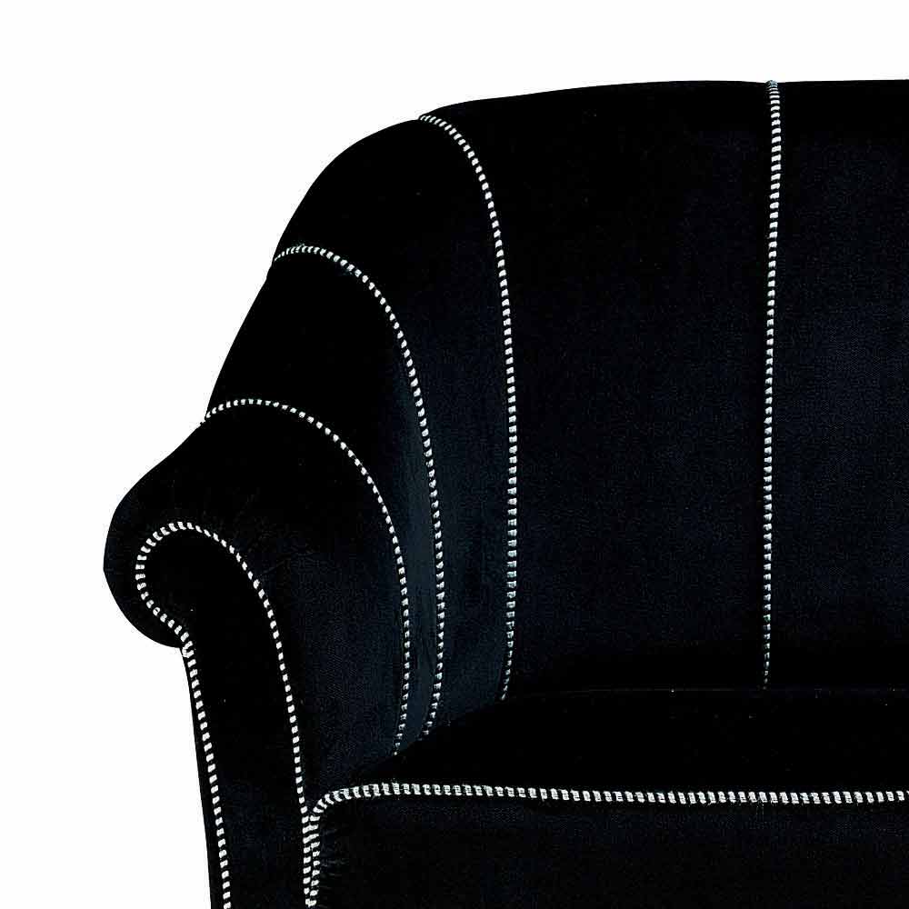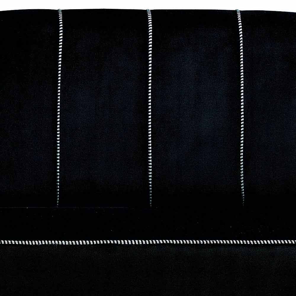 2 seater sofa with internal wooden structure covered in polyurethane foam and polyester fibre lining, external covering in black velvet with black and white trimmings ( not removable ). Made through a 100% Made in Italy production , this sofa has a particularly simple and versatile shape that easily adapts to any modern living area thanks to a sober design and essential shapes . To enrich the aesthetics are the contrasting seams that underline the basic features of the sofa, giving a sense of refinement and innovation for a cutting-edge result. Ideal for those who love an elegant furnishing style, this furnishing solution also features a velvet covering, a material that maximises its comfort even to the touch. The materials chosen and used for the realization of this complement also allow to obtain a particularly welcoming seat, therefore ideal for spending wonderful moments dedicated to relaxation in your lounge.