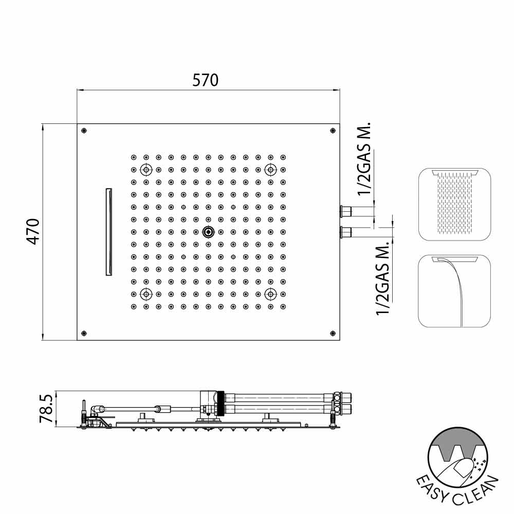 - Dream/ Shower head two functions (2 Sprays: Wide rain - Waterfall)