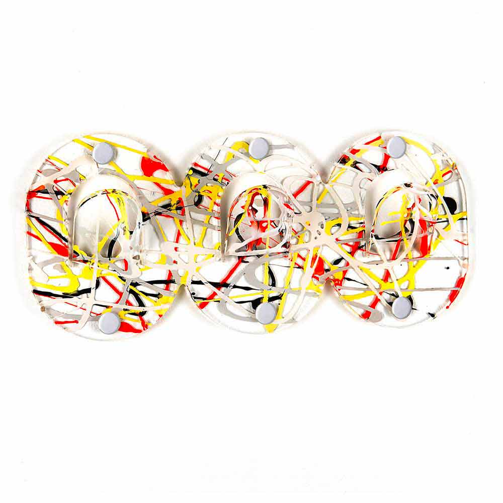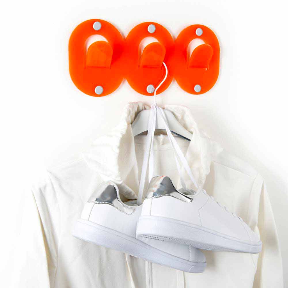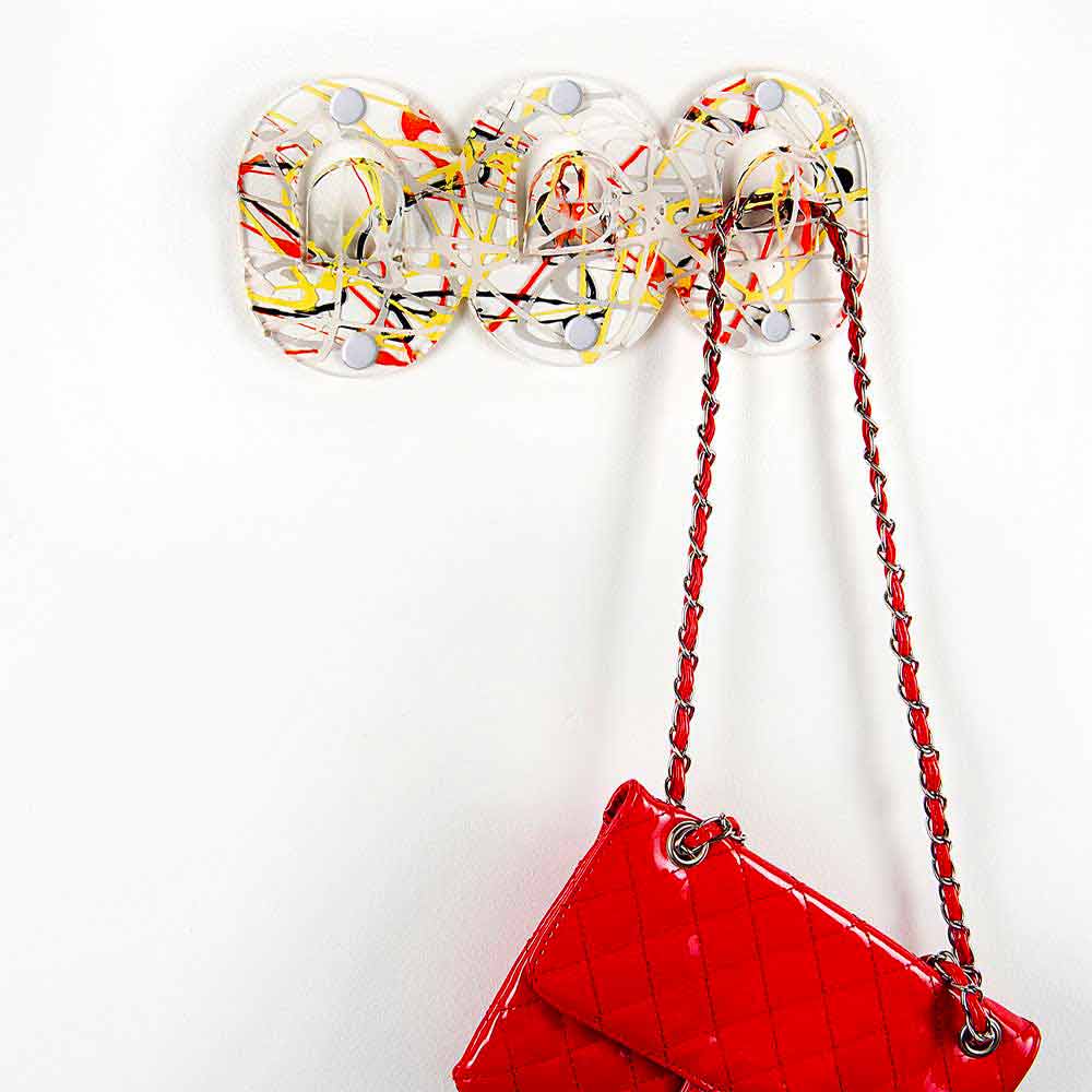 2 Colored plexiglass wall hangers with modern clip design made in Italy.