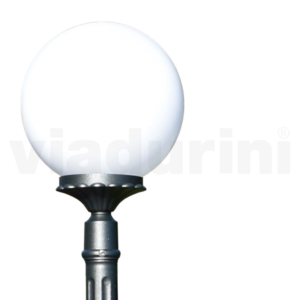 Garden lamp made with anthracite finish die-cast aluminum structure and opal acrylic sphere diffuser, entirely Made in Italy.