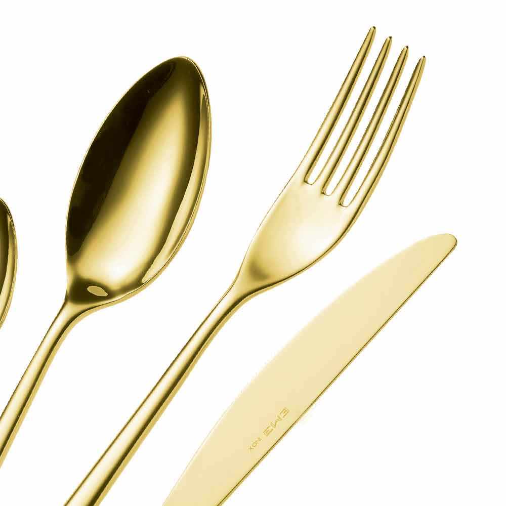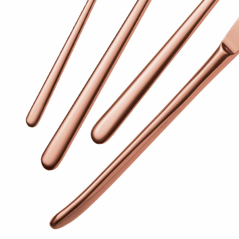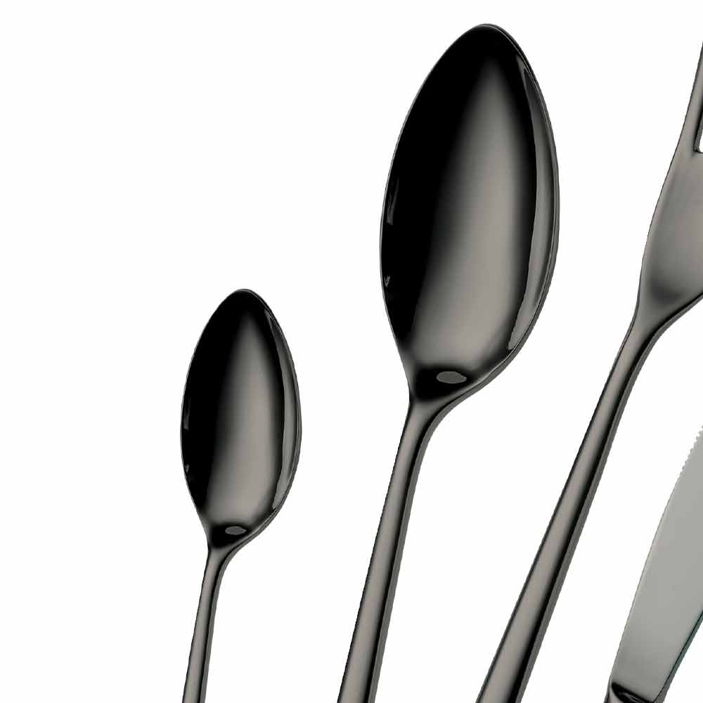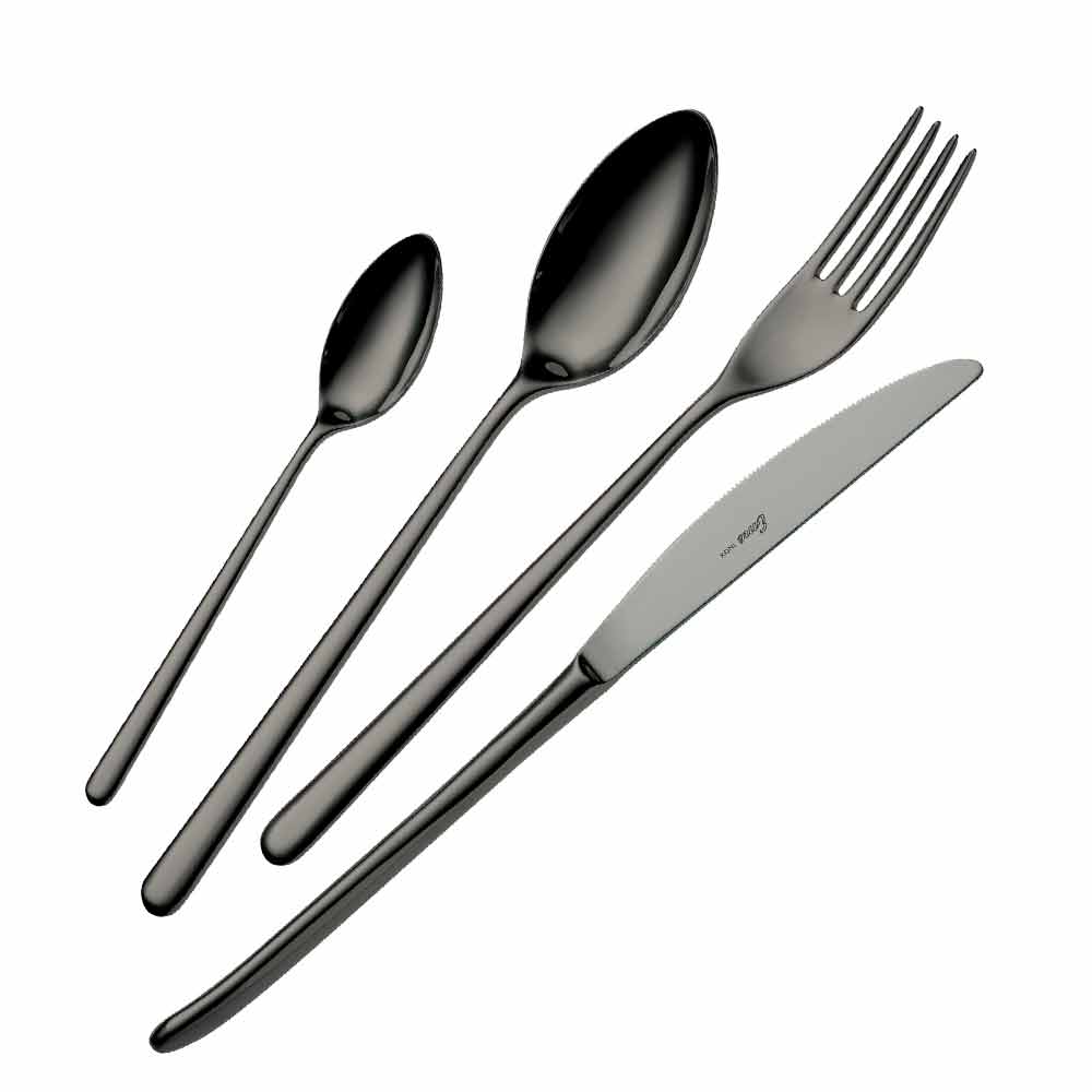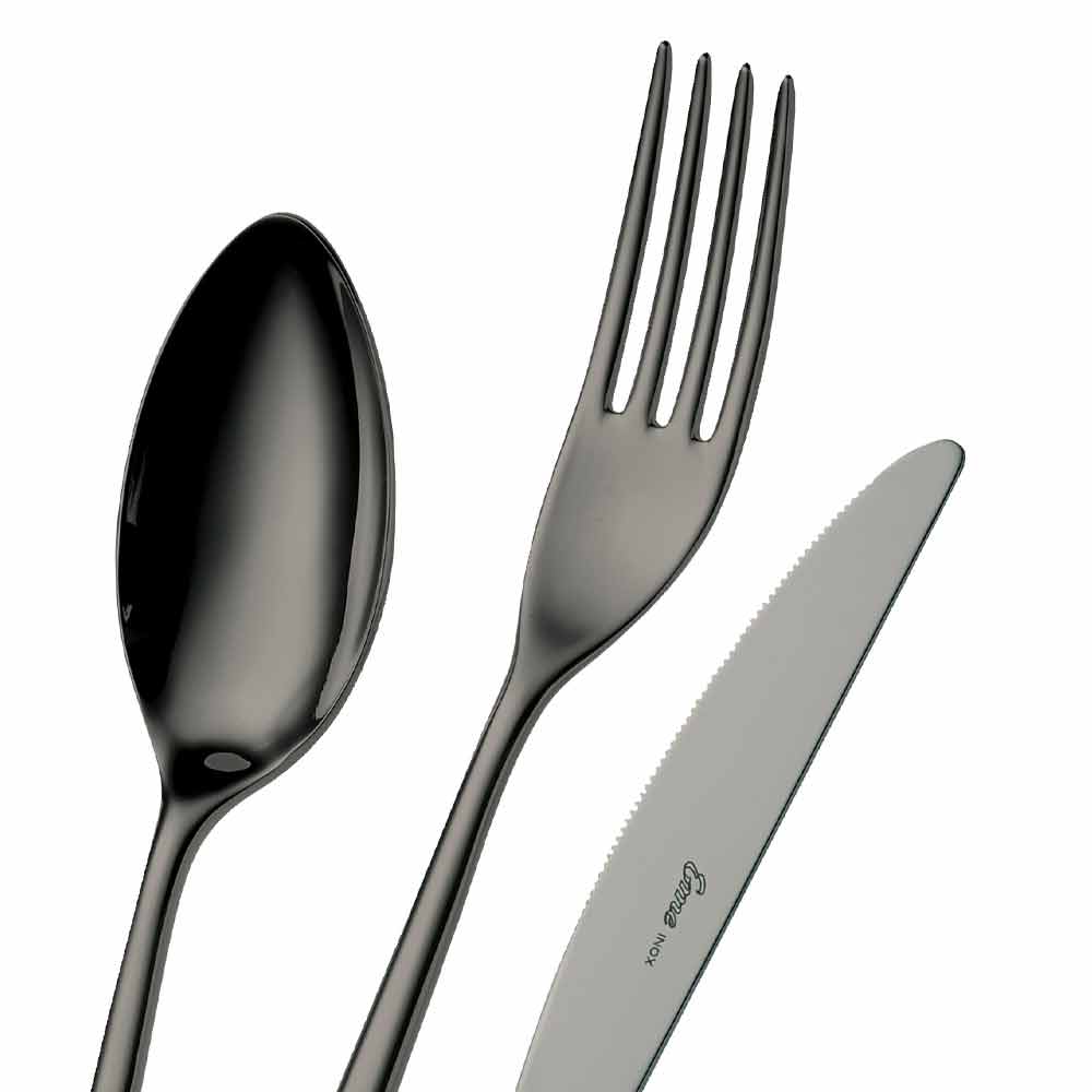 PVD is the acronym for Physical Vapor Deposition, which is a technology used to colour steel in special vacuum chambers where very thin metal films are steam sprayed, which condense on the cutlery. This treatment, with a range of wonderful shades of colour, in addition to embellishing the cutlery, makes them more