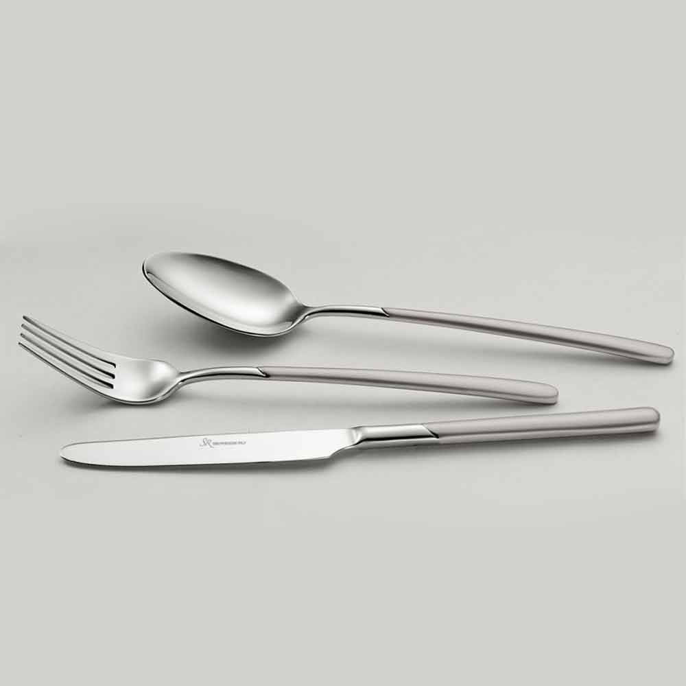 Set of 24 cutlery in polished stainless steel with sandblasted handle of made in Italy design.