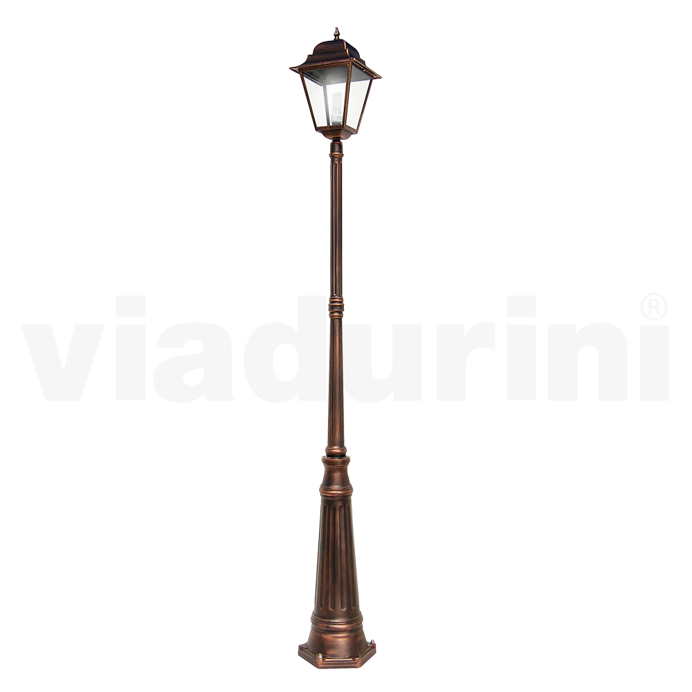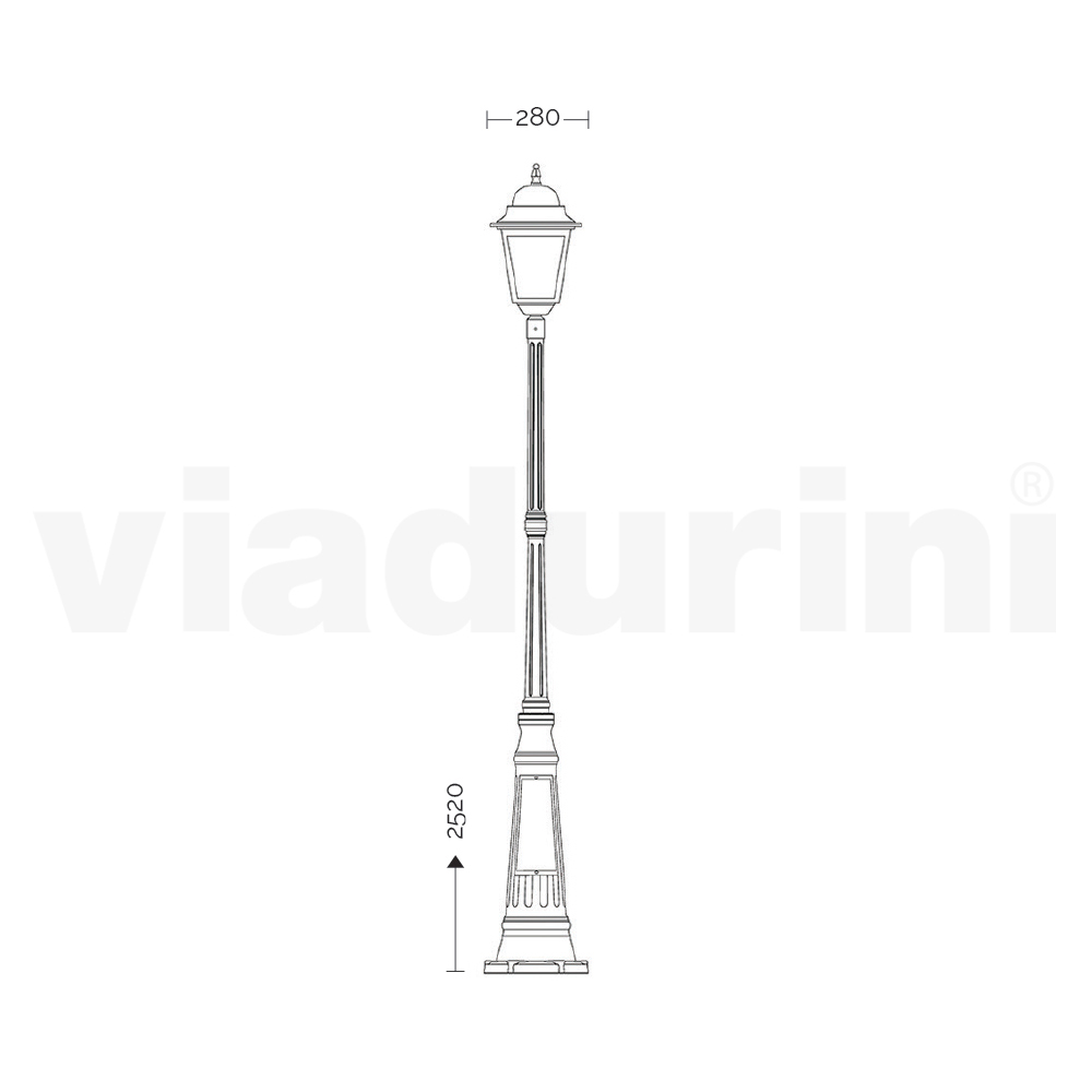 Incorporate a touch of classic grace into your outdoor space with this street lamp. Made of robust die-cast aluminium , it stands out for its exceptional durability and its ability to withstand the elements with elegance. The finish enhances any garden or driveway, spreading a visual warmth that is as welcoming as it is charming. The upper dome and glass come together to create optimal light distribution, while the crafted details give the piece a distinctive character and antique charm. Whether positioned along a romantic path in the garden or as a welcome point at the entrance, this lamppost is not simply a functional element but a true symbol of style and quality.