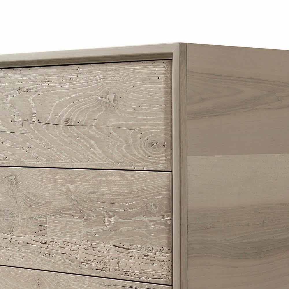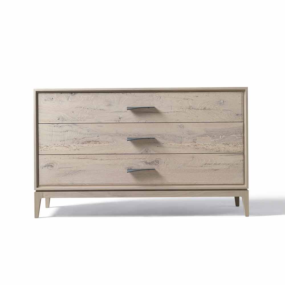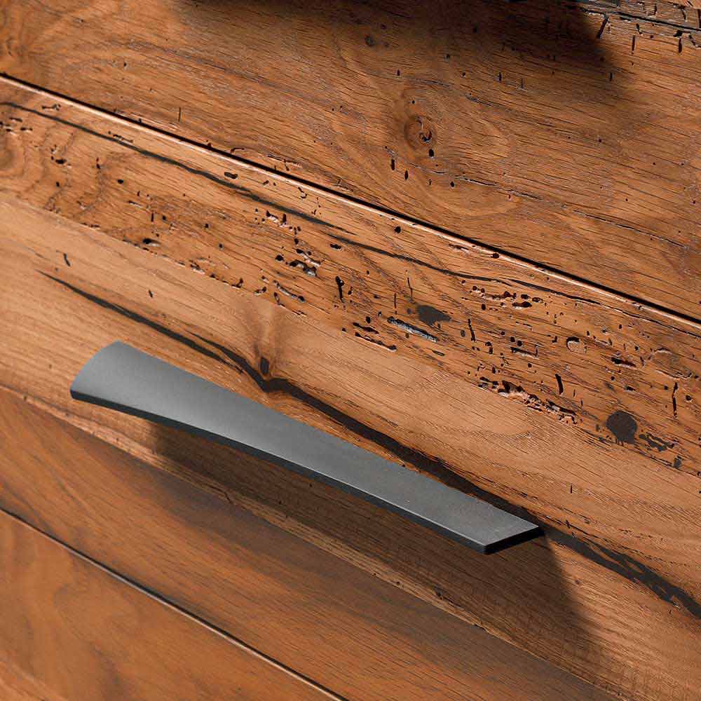 In detail, the natural look of the 3-drawer dresser. The accurate oil finish, which enhances the grain of the wood, is the result of handmade craftsmanship performed manually. The particular shape of the handle adds a touch of character and personality to the furniture.