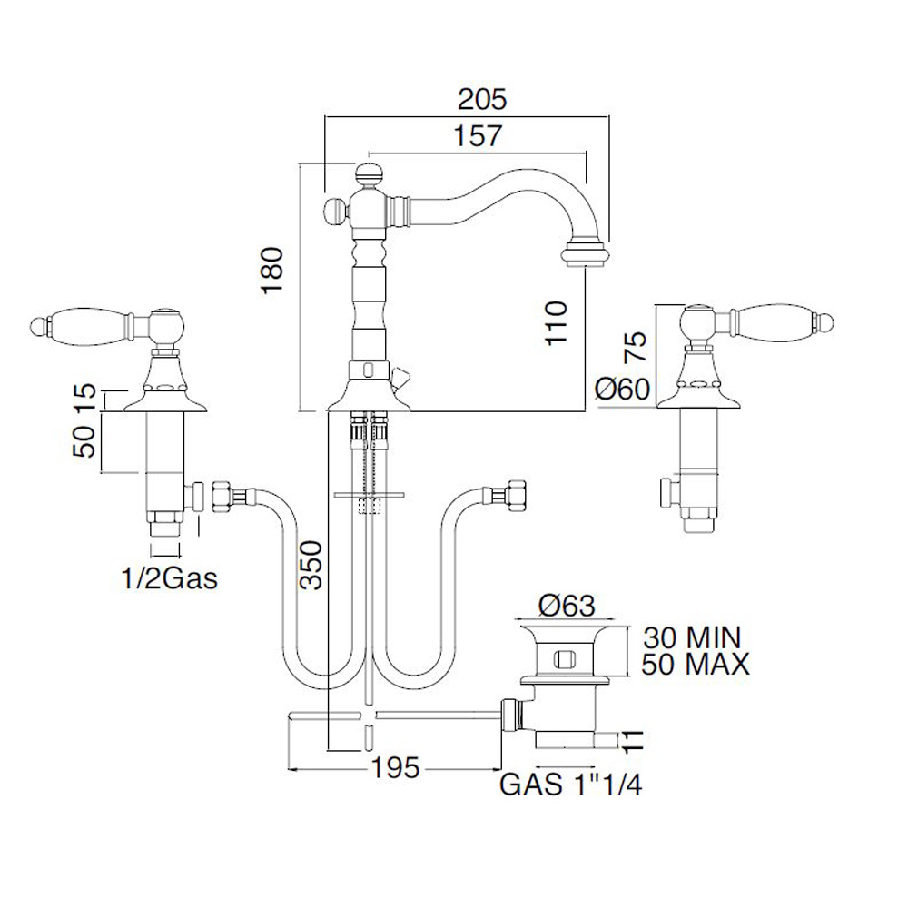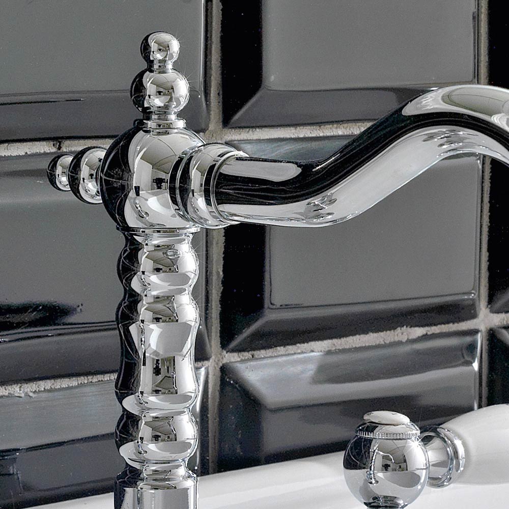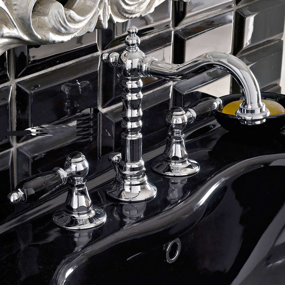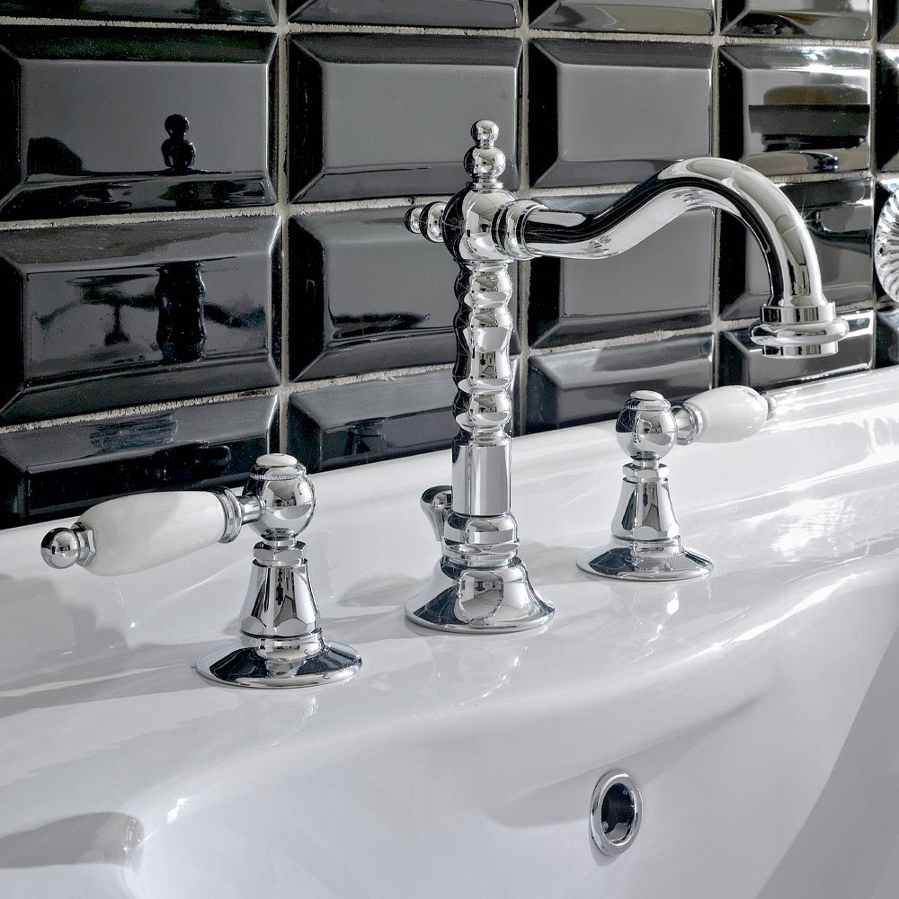 3-hole basin tap with handcrafted brass drain and levers,Ā classic style made in Italy.