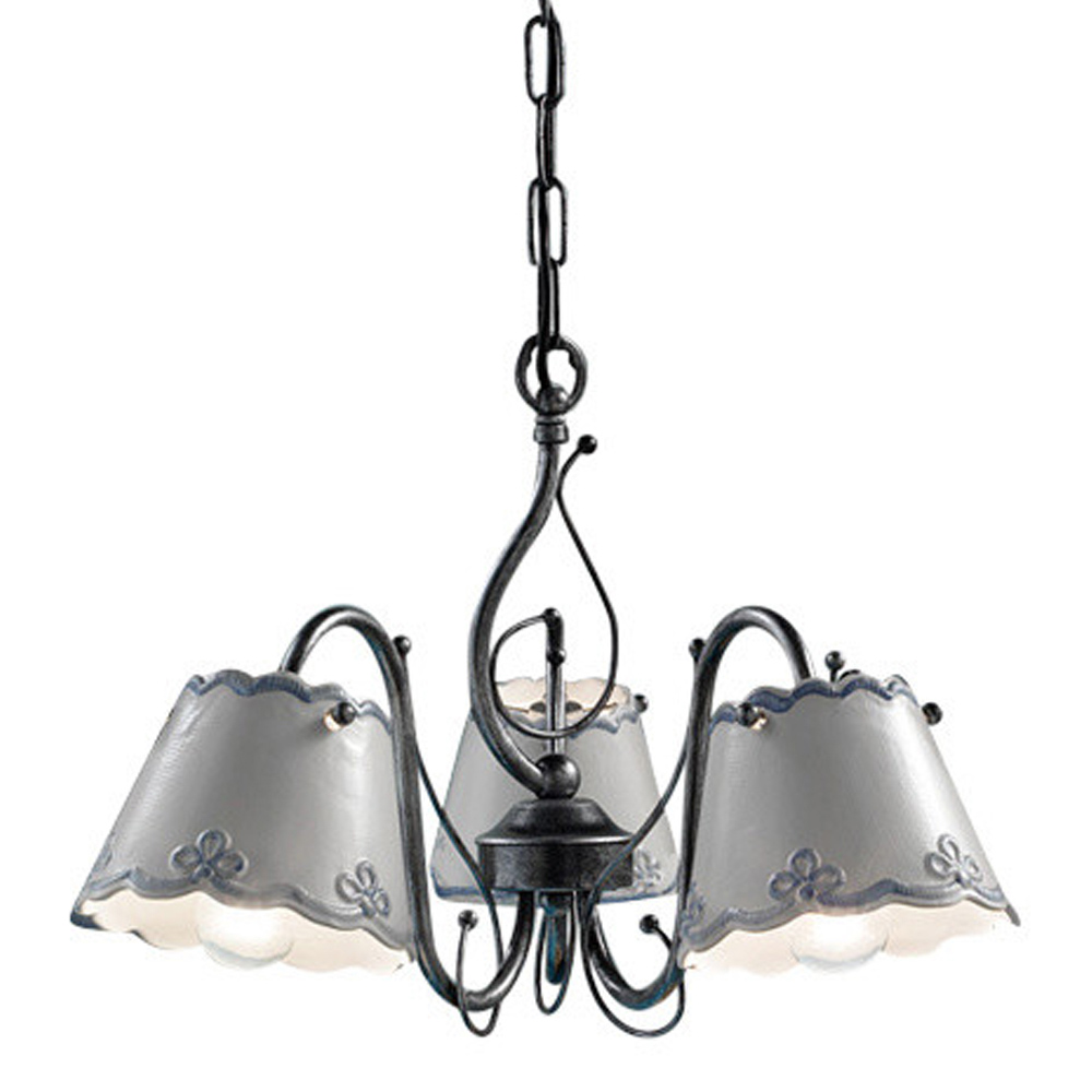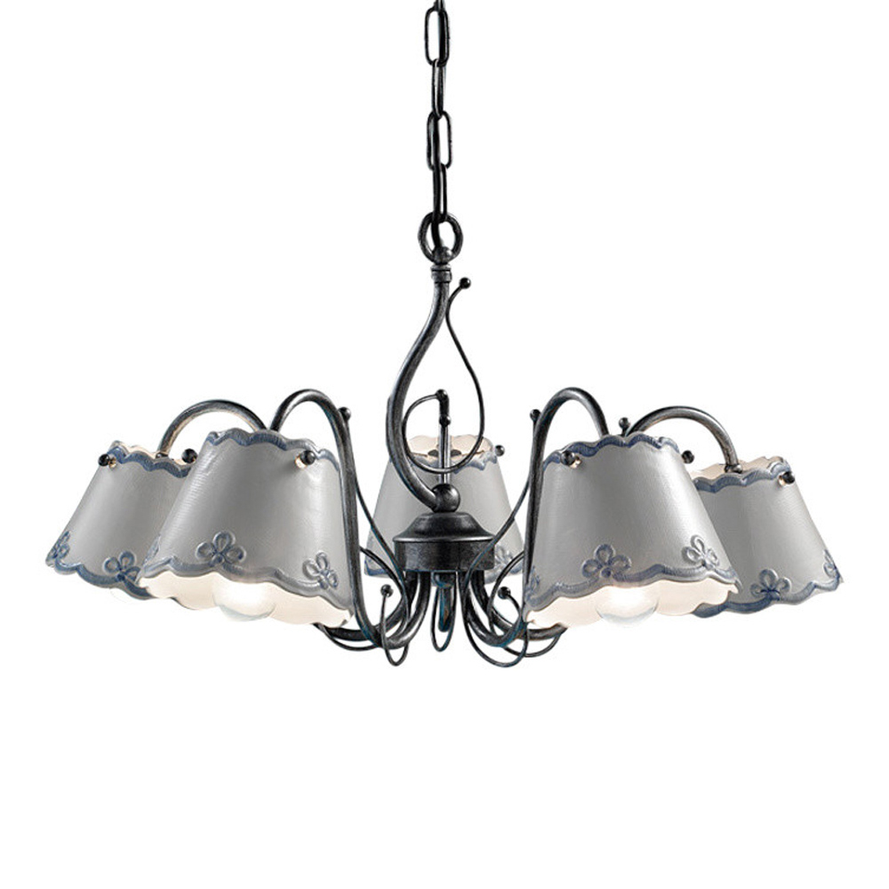 Living room chandelier 3 or 5 lights handcrafted in metal and ceramic with embroidery effect, made in Italy by Ferroluce.