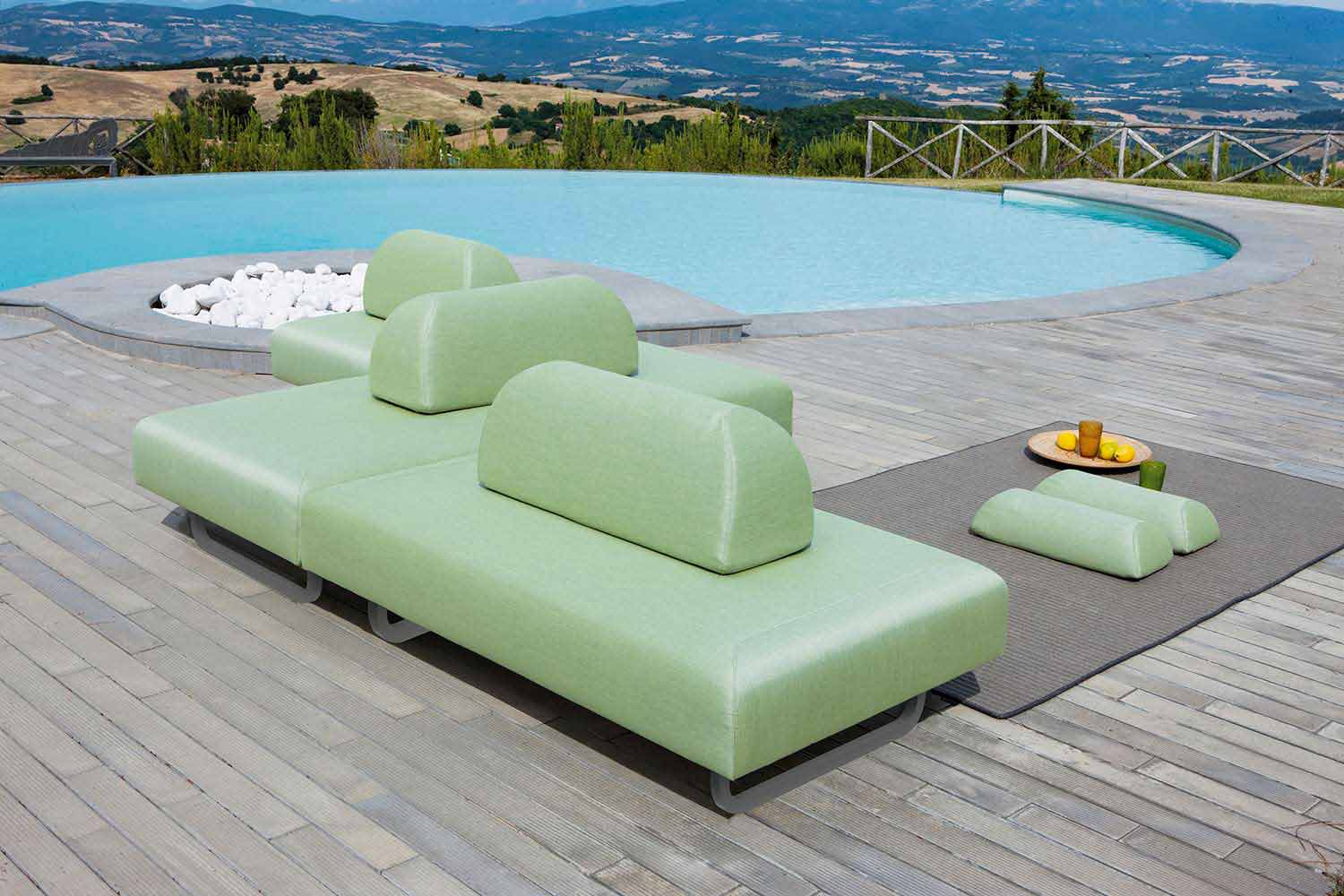 Its internal structure is made of resistant wood and includes a padding sealed with 100% dyed acrylic outdoor fabric used precisely for its