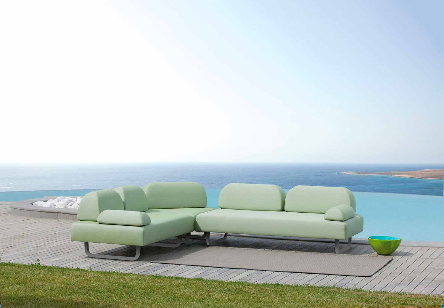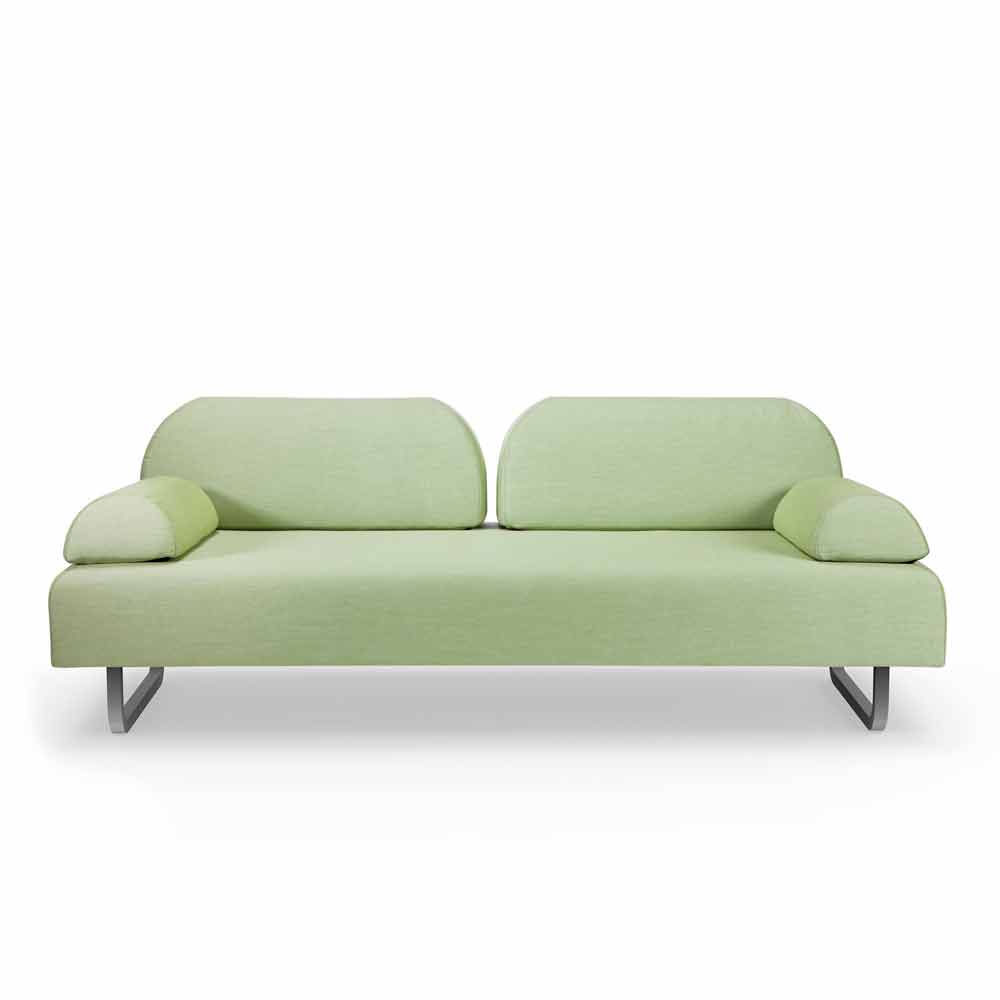 Italy with selected raw materials that guarantee a high quality final product. Characterized by a design between futuristic and retro to create a unique and innovative product, the sofa includes two backrest cushions that can be positioned as desired, making the product versatile and modular.