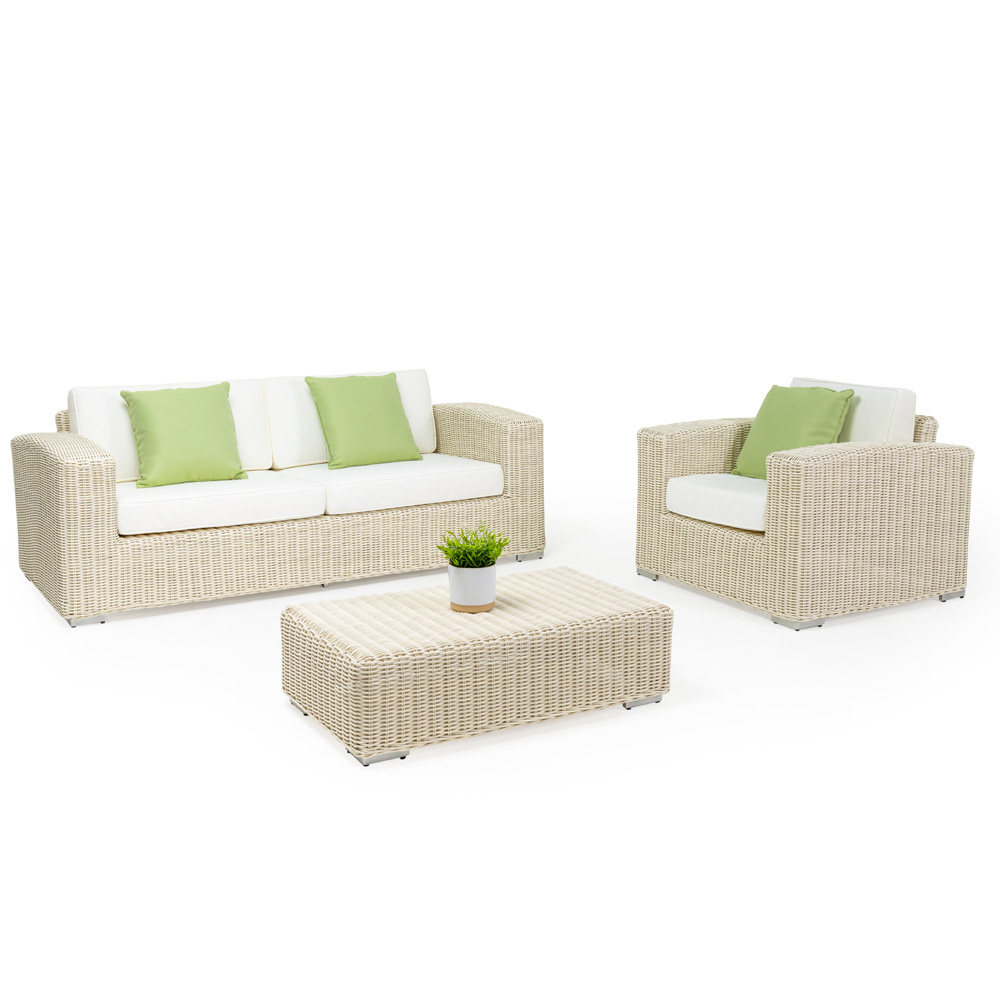 The refined style, the very high quality of the materials and its sinuous shapes make it perfect for interior and exterior furnishings. Thanks to the use of special high-quality materials , this outdoor sofa is not afraid of bad weather and temperature changes thanks to the certification of the woven fibre. The large seat can comfortably accommodate up to 3 people, it is in fact perfect for your moments of conviviality.