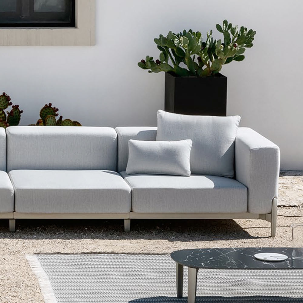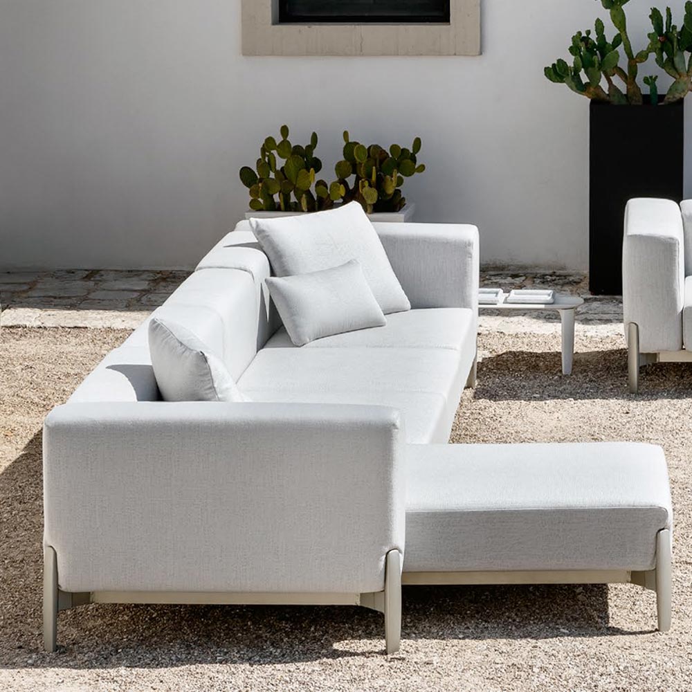 Luxury 3 seater garden sofa with chaise longue, aluminium structure and waterproof fabric made in Italy.