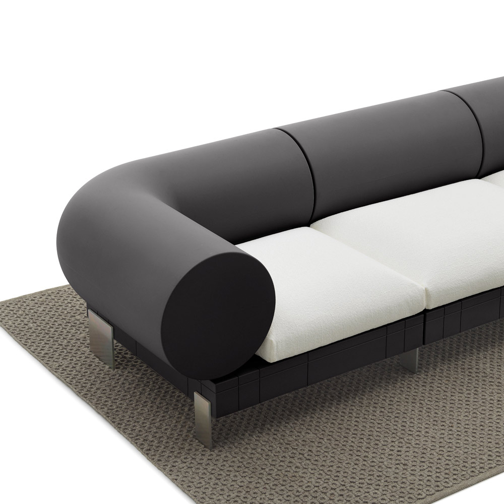 This contemporary sofa combines comfort and modern design in an attention-grabbing piece of furniture. Characterized by clean queues and an innovative shape with lateral cylinders, the sofa offers a touch of unique and functional style . Its colour palette introduces an element of brightness and freshness into every living space.
