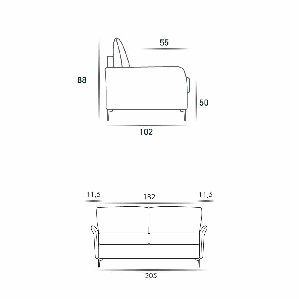 Maxi 3 seater sofa W205 cm modern design in eco-leather / Erica fabric