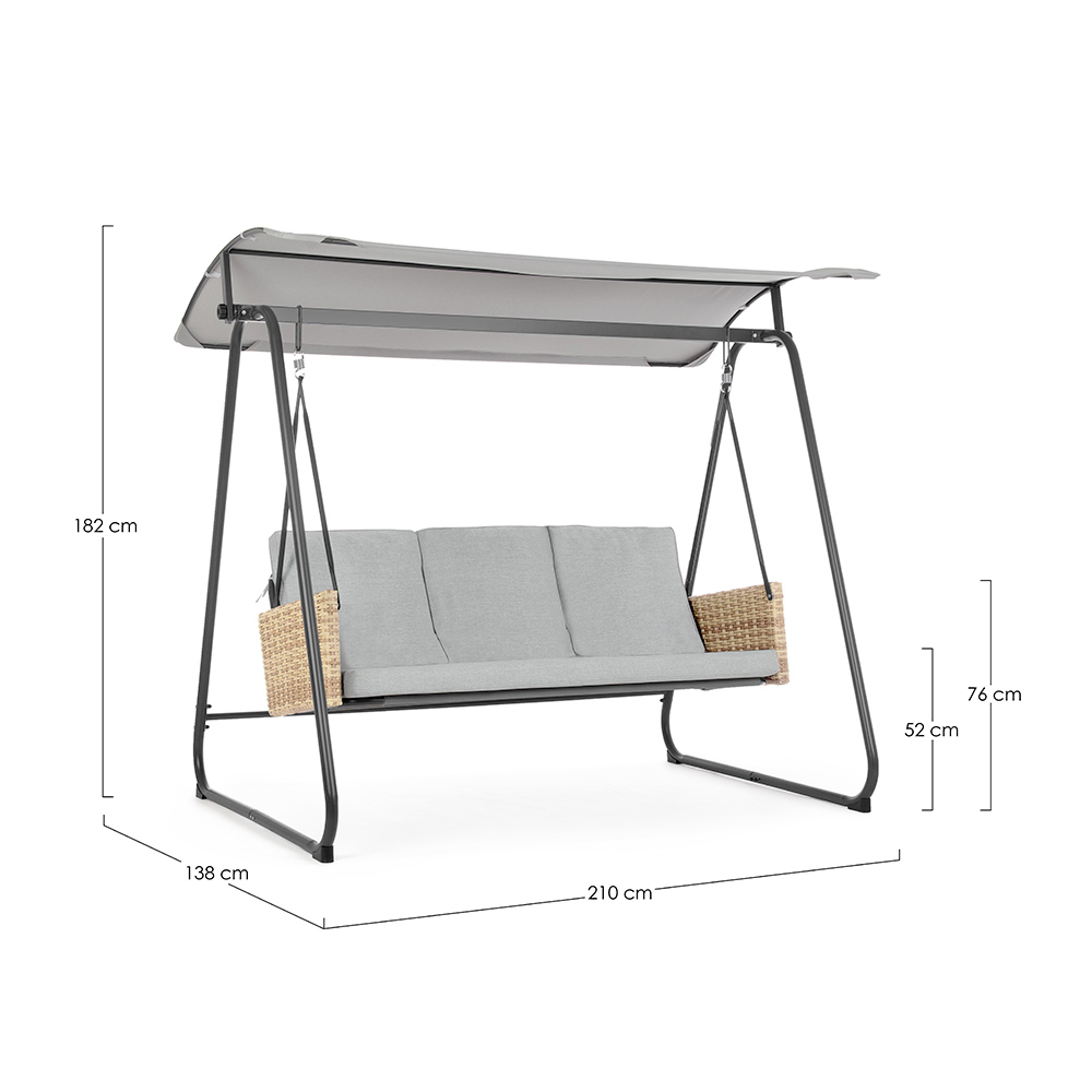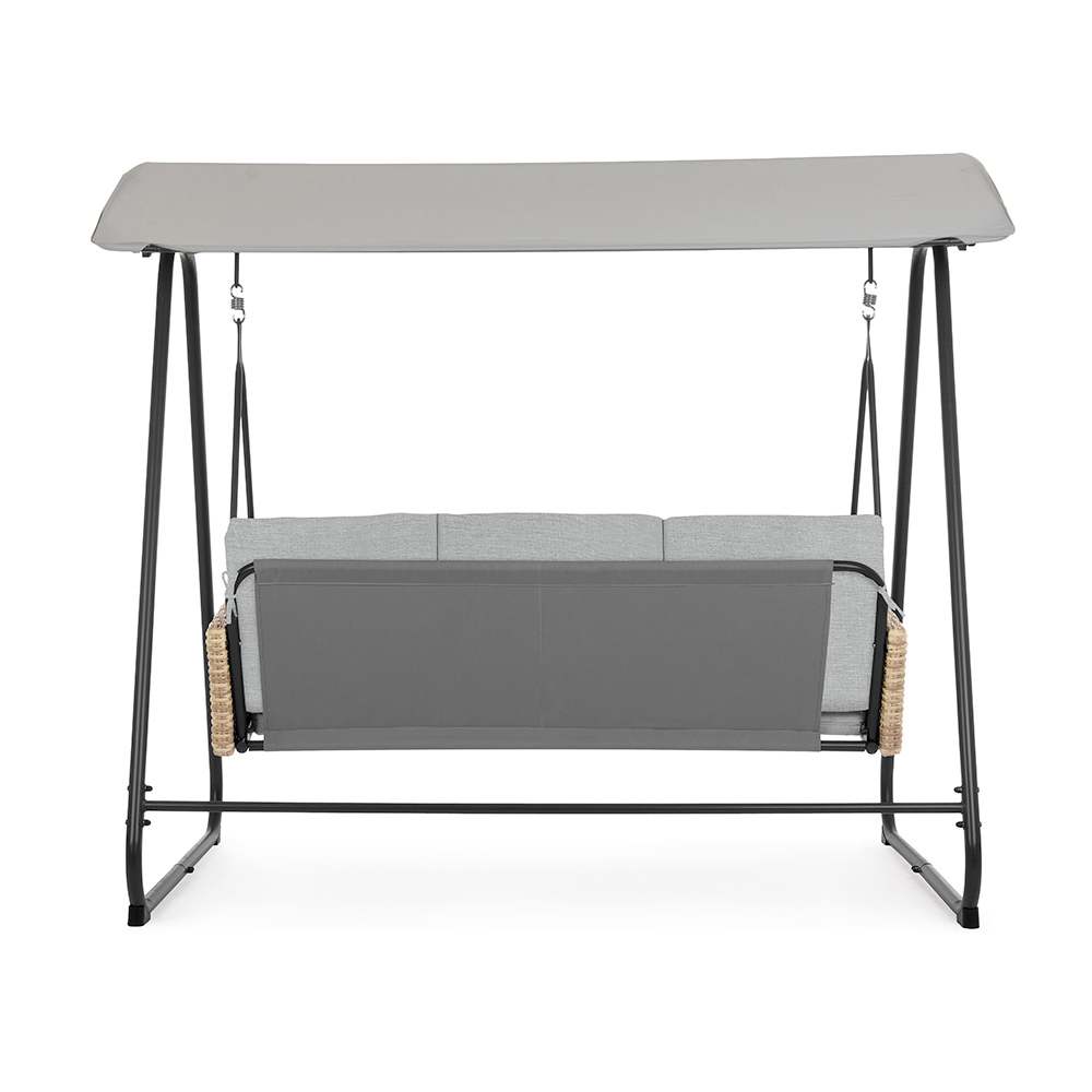 This garden swing is an oasis of peace and relaxation, designed to enrich any outdoor space with its elegant and comfortable design . The solid painted steel structure provides not only stability but also a strong and contemporary aesthetic. The soft and inviting cushions promise hours of comfort, perfect for immersing yourself in an exciting read or enjoying a sweet nap in the shade.