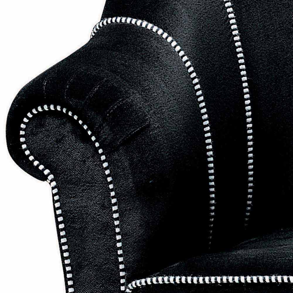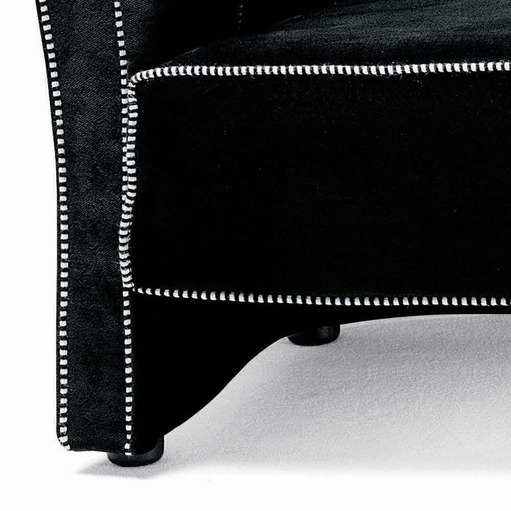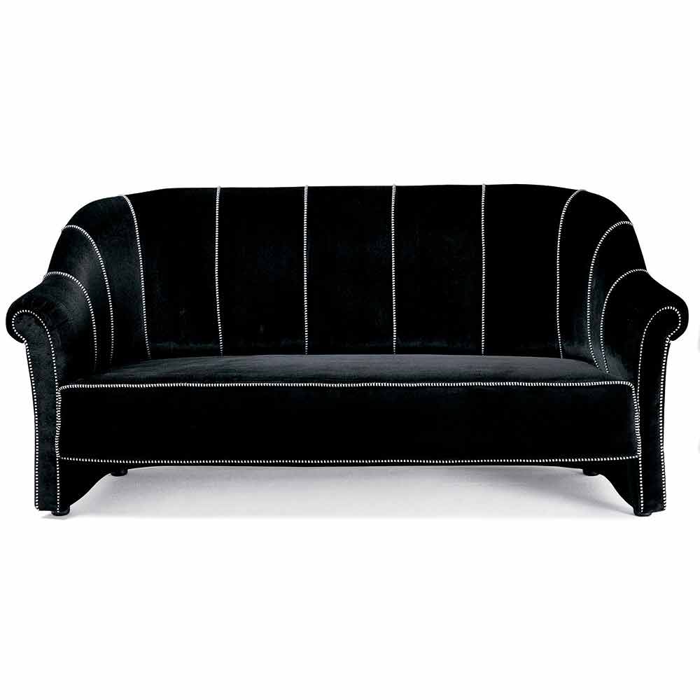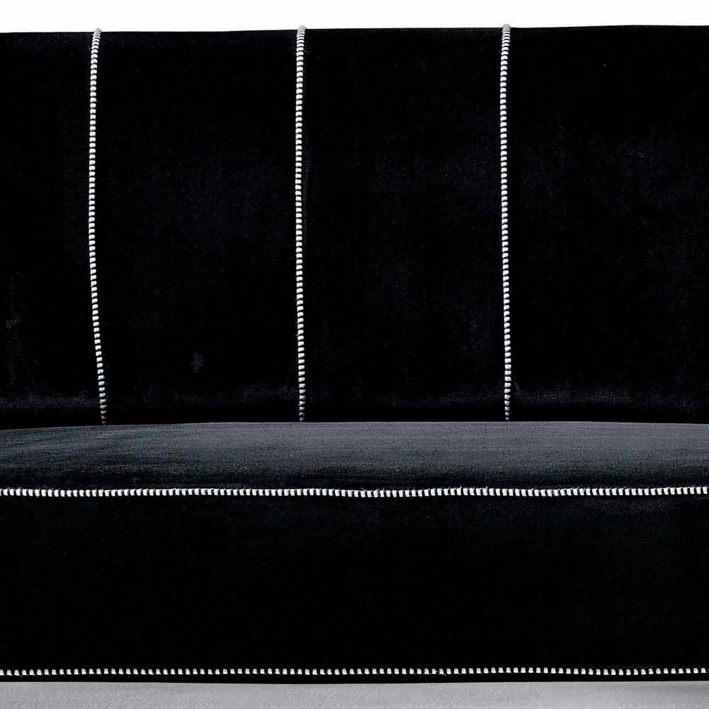 3 seater sofa made in Italy with internal wooden structure covered in polyurethane foam and polyester fibre lining, external covering in black velvet with black and white trimmings ( not removable ). This sofa has a particularly simple and versatile shape that easily adapts to any modern living area thanks to a sober design and essential shapes . To enrich the aesthetics are the contrasting seams that underline the basic features of the sofa, giving a sense of refinement and innovation for a cutting-edge result. Ideal for those who love an elegant furnishing style, this furnishing solution also features a velvet covering, a material that maximises its comfort even to the touch. The materials chosen and used for the realization of this complement also allow to obtain a particularly welcoming seat, therefore ideal for spending wonderful moments dedicated to relaxation in your lounge.
