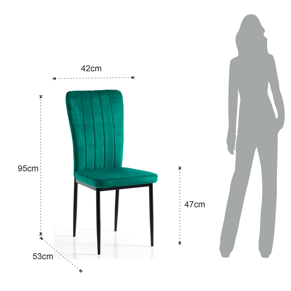 This chair is the perfect balance between elegance and comfort , a must-have for any modern environment. Upholstered in a green velvet fabric, this chair not only catches the eye with its vibrant colour, but also offers a comfortable seat thanks to the padding and ergonomic support.