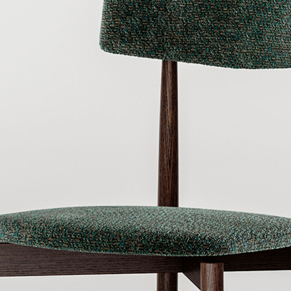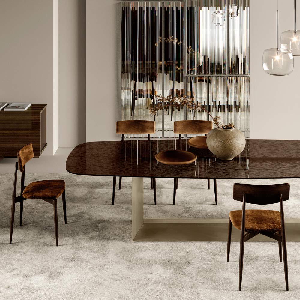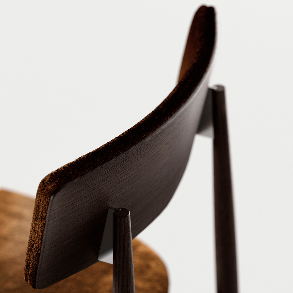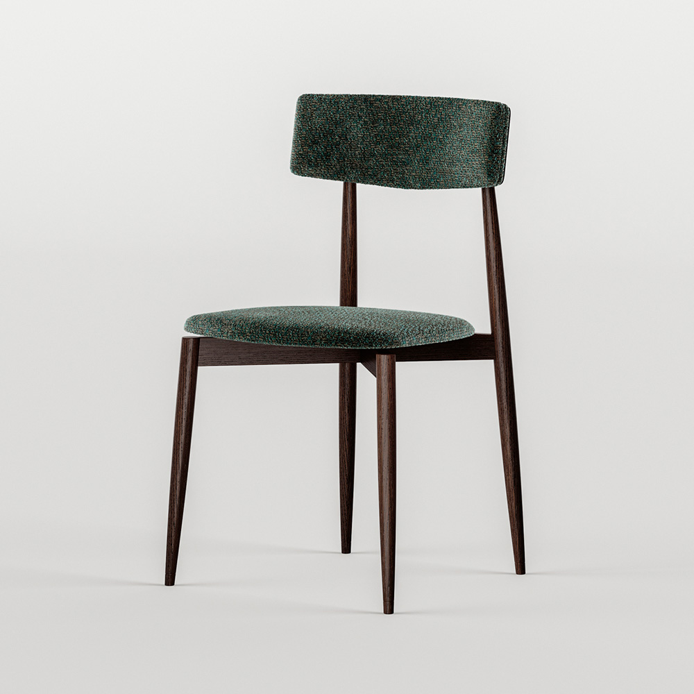 polished metal. Practical and versatile is the combination of meticulous manual processes and the use of latest generation machines. The attention to detail, from the metal detail on the back to the special shape of the legs, up to the combinations with exclusive fabrics, make it a refined chair with character.