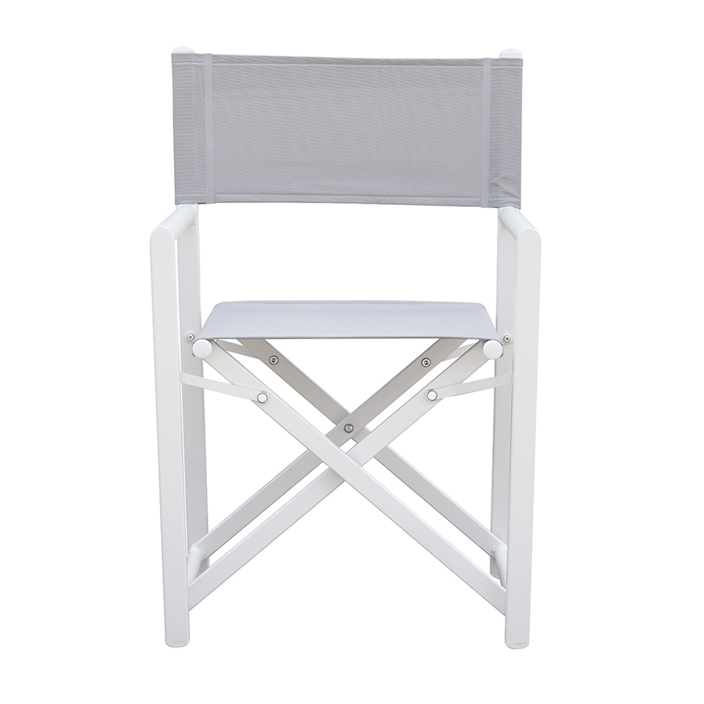 Give a touch of elegance and practicality to your outdoor space with this garden director chair. Its lightweight yet sturdy white aluminum frame provides impeccable weather resistance, perfect for your patio, terrace or garden.