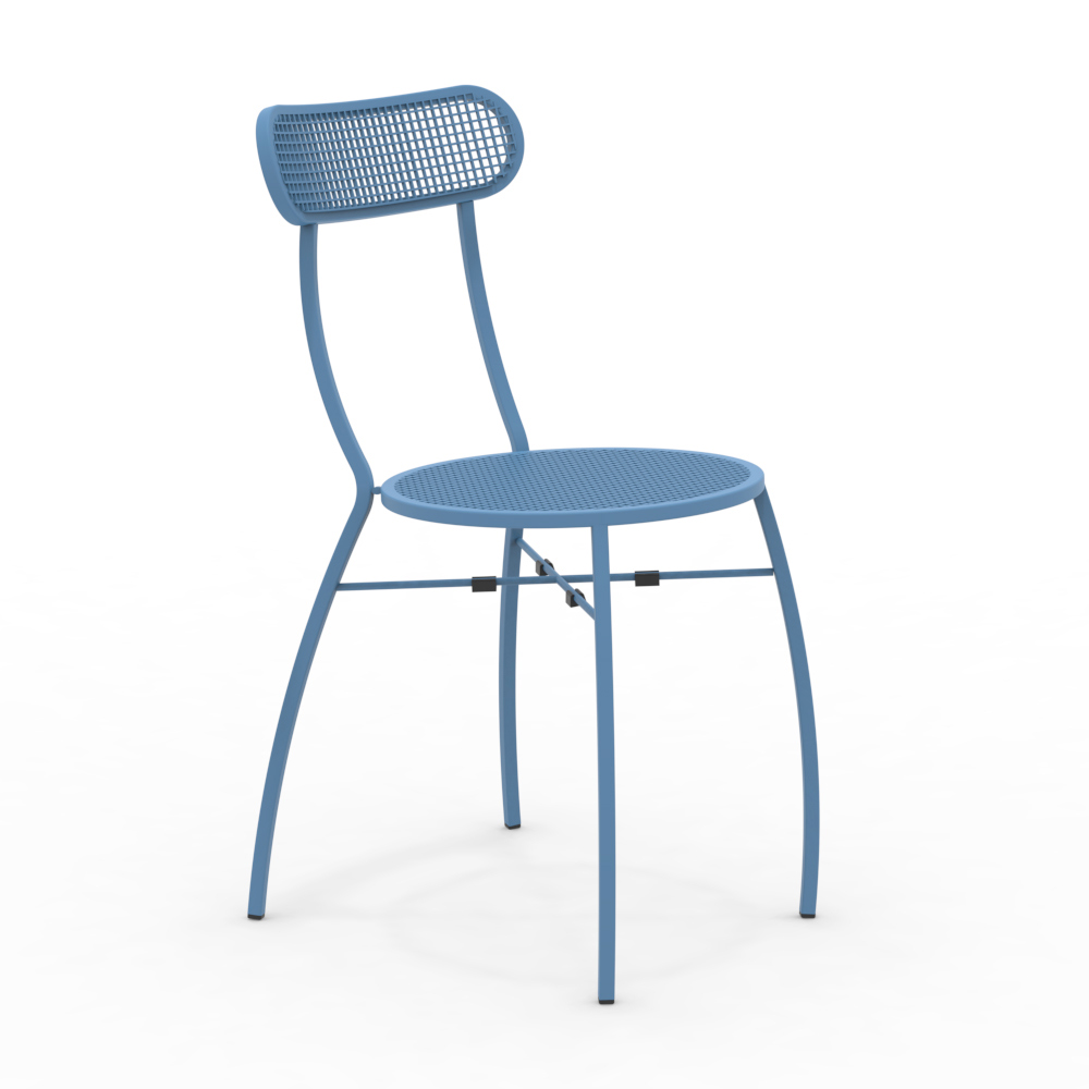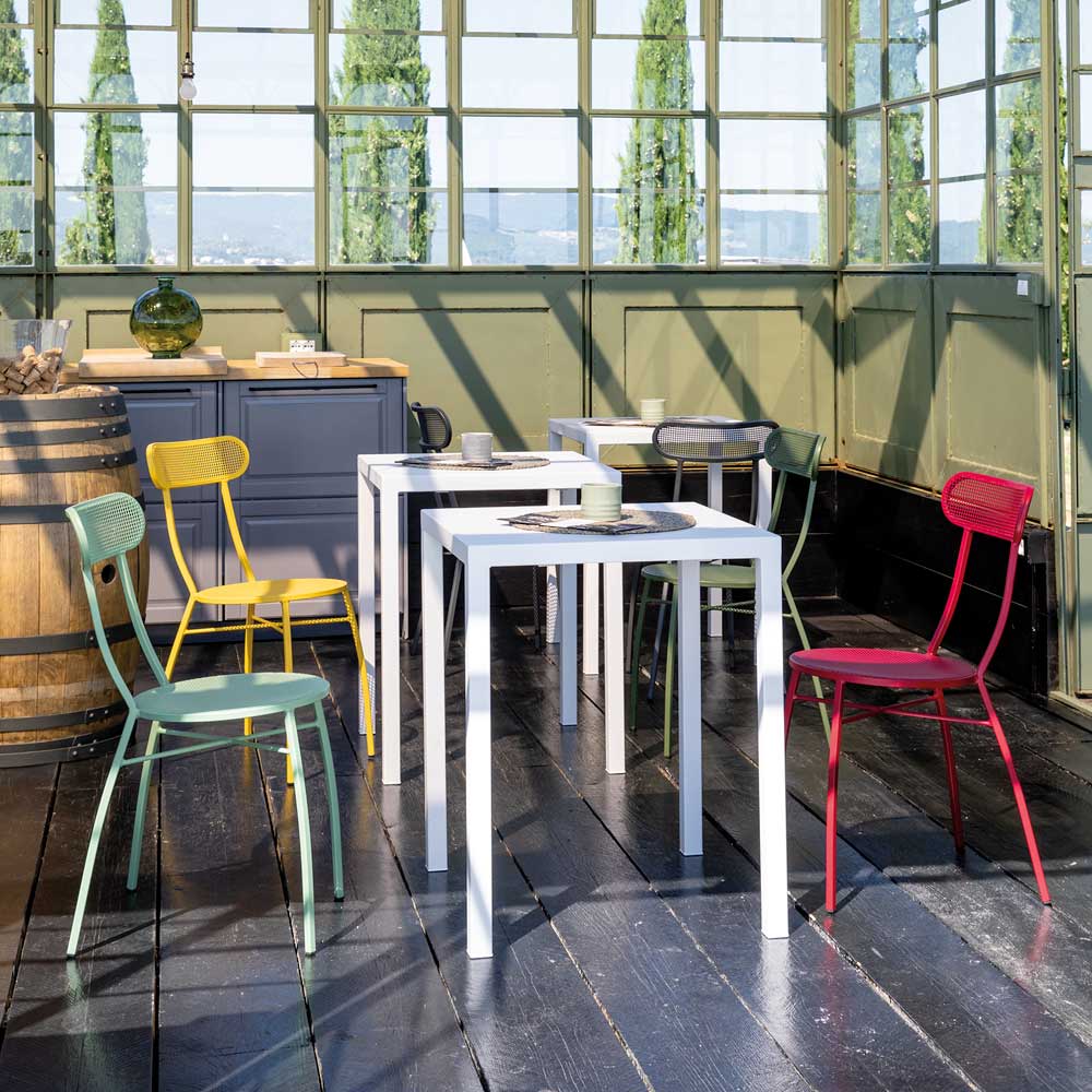 This vibrant collection of powder-coated galvanized iron patio chairs is the epitome of