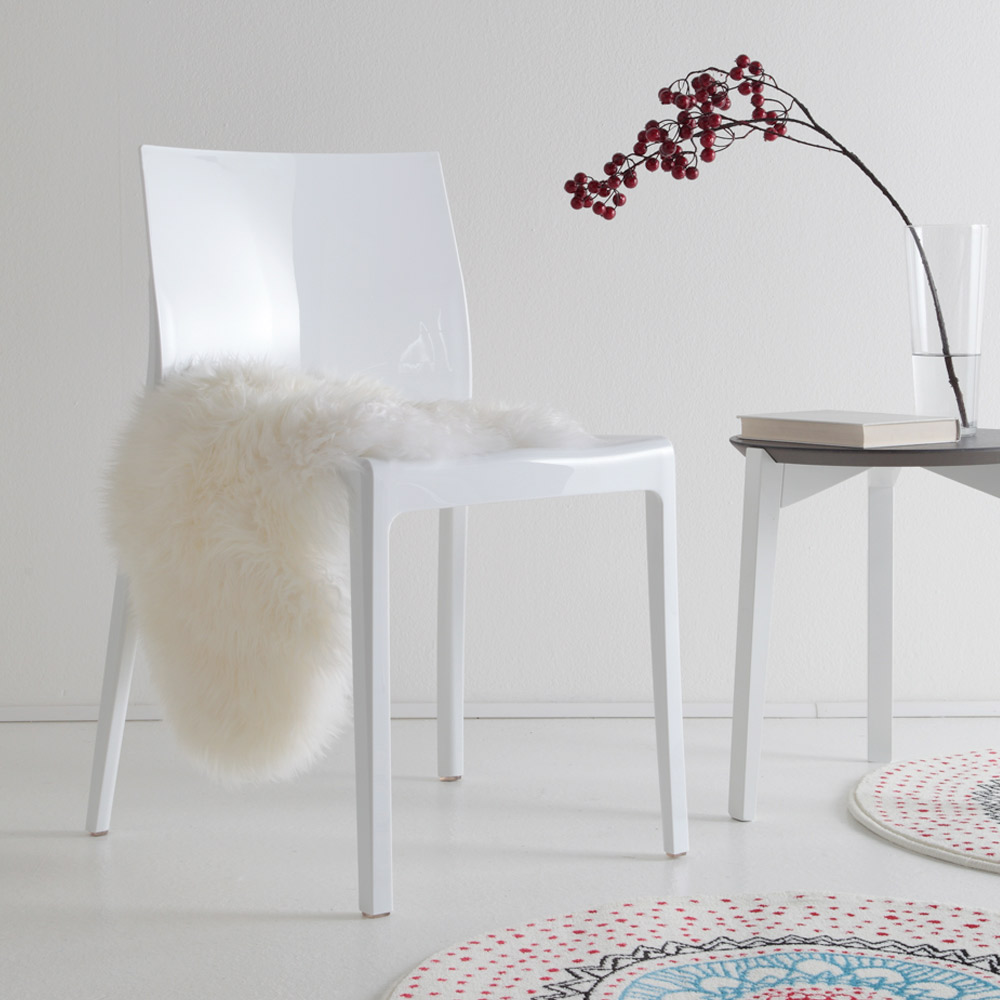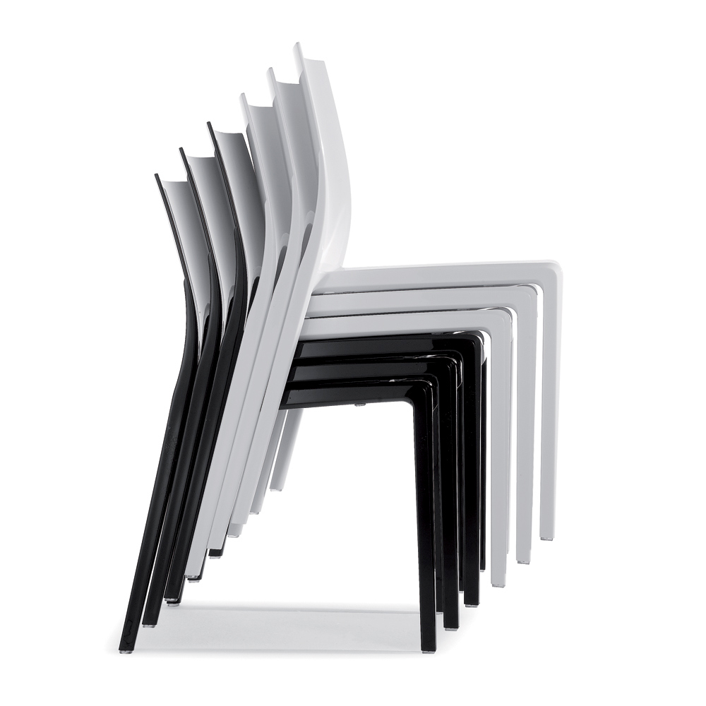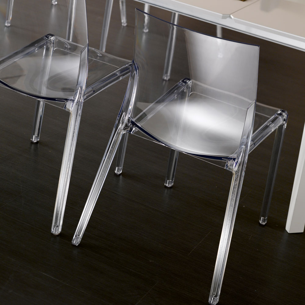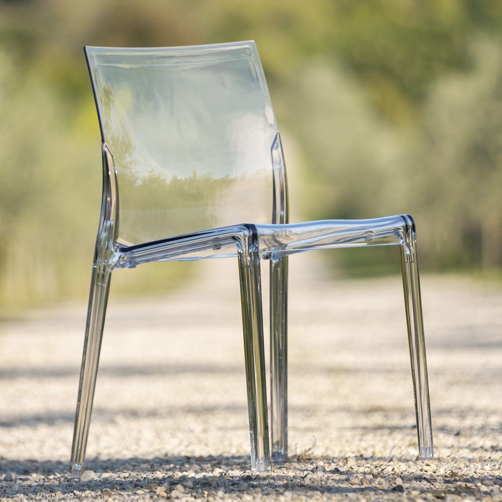 This polycarbonate chair is a true design chameleon, capable of adapting with discretion and style to both indoor and outdoor environments .