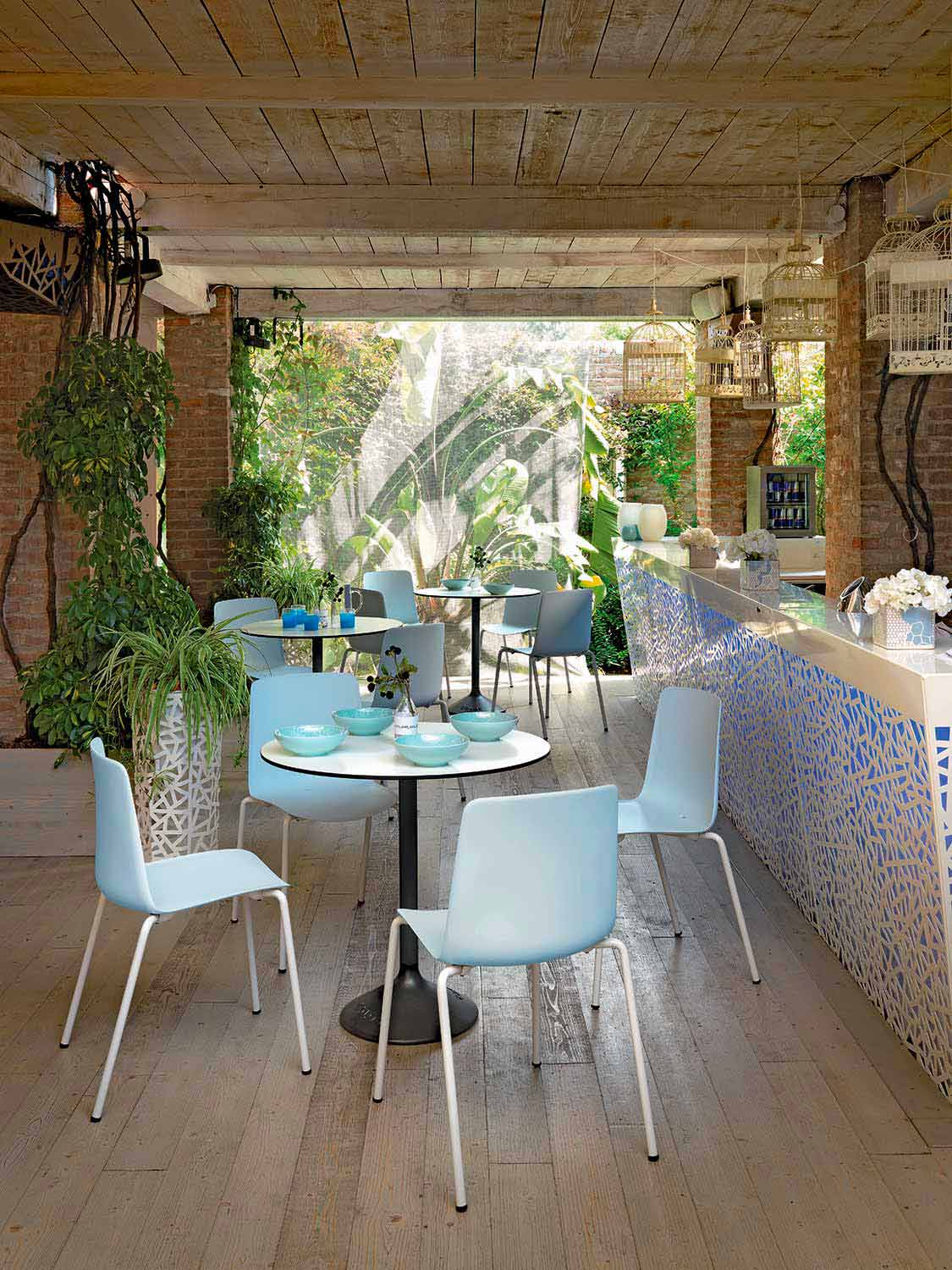 The Carita outdoor chair is characterized by a simple and minimal design, marrying perfectly with the furnishings of domestic and common environments.