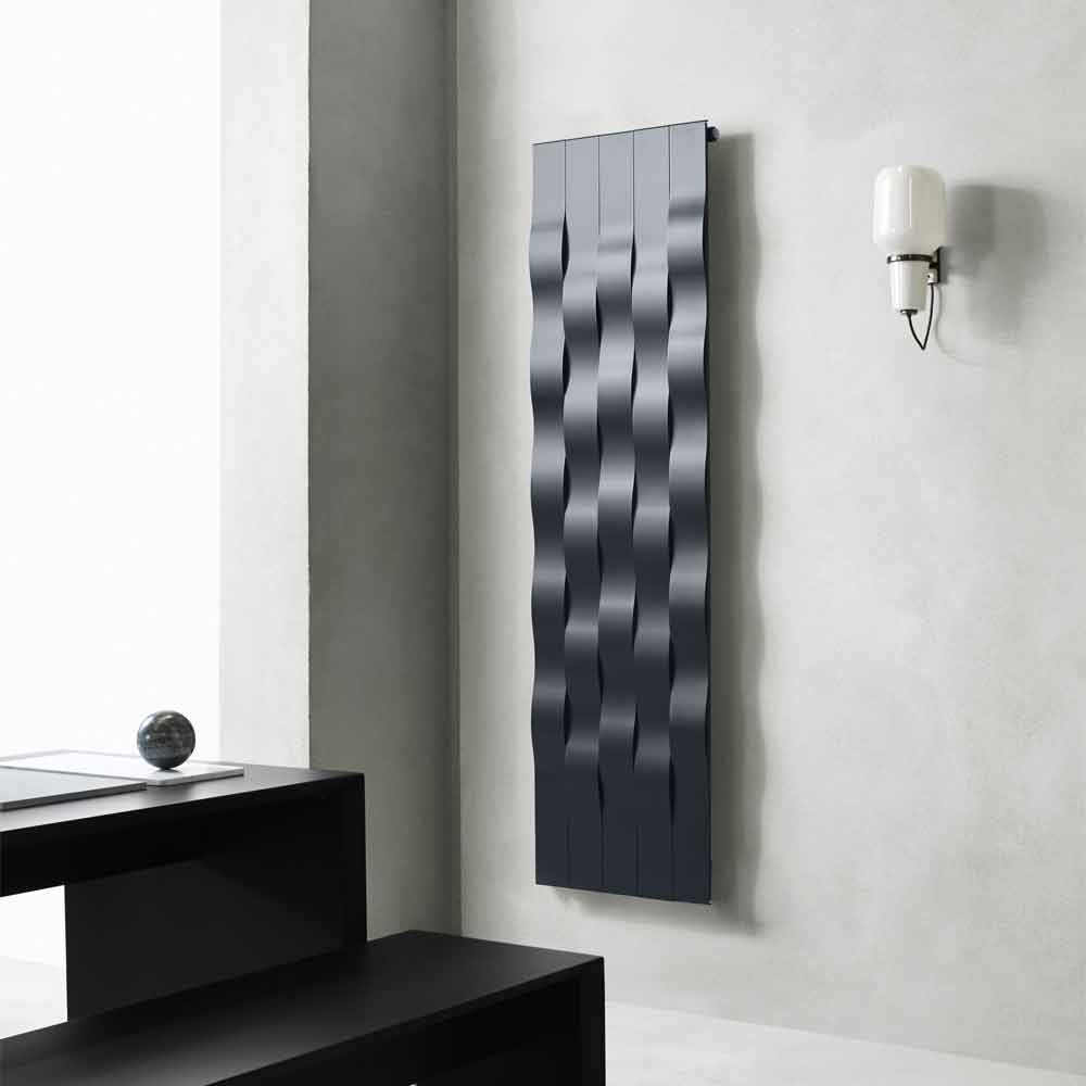 Vertical electric design radiator in steel for the modern and made in Italy lounge or bathroom.